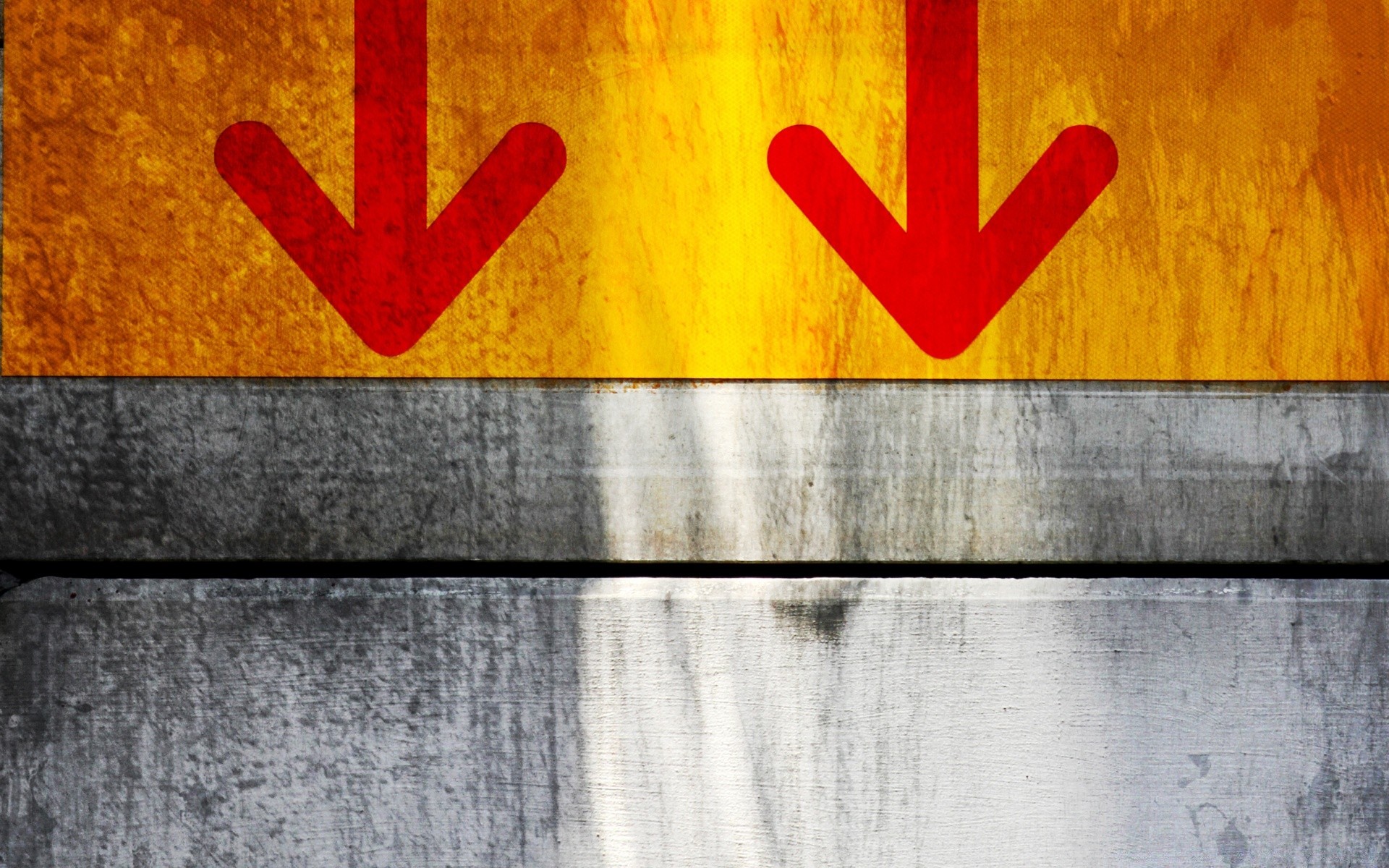 Dwie czerwone strzałki skierowane w dół na tle delta
