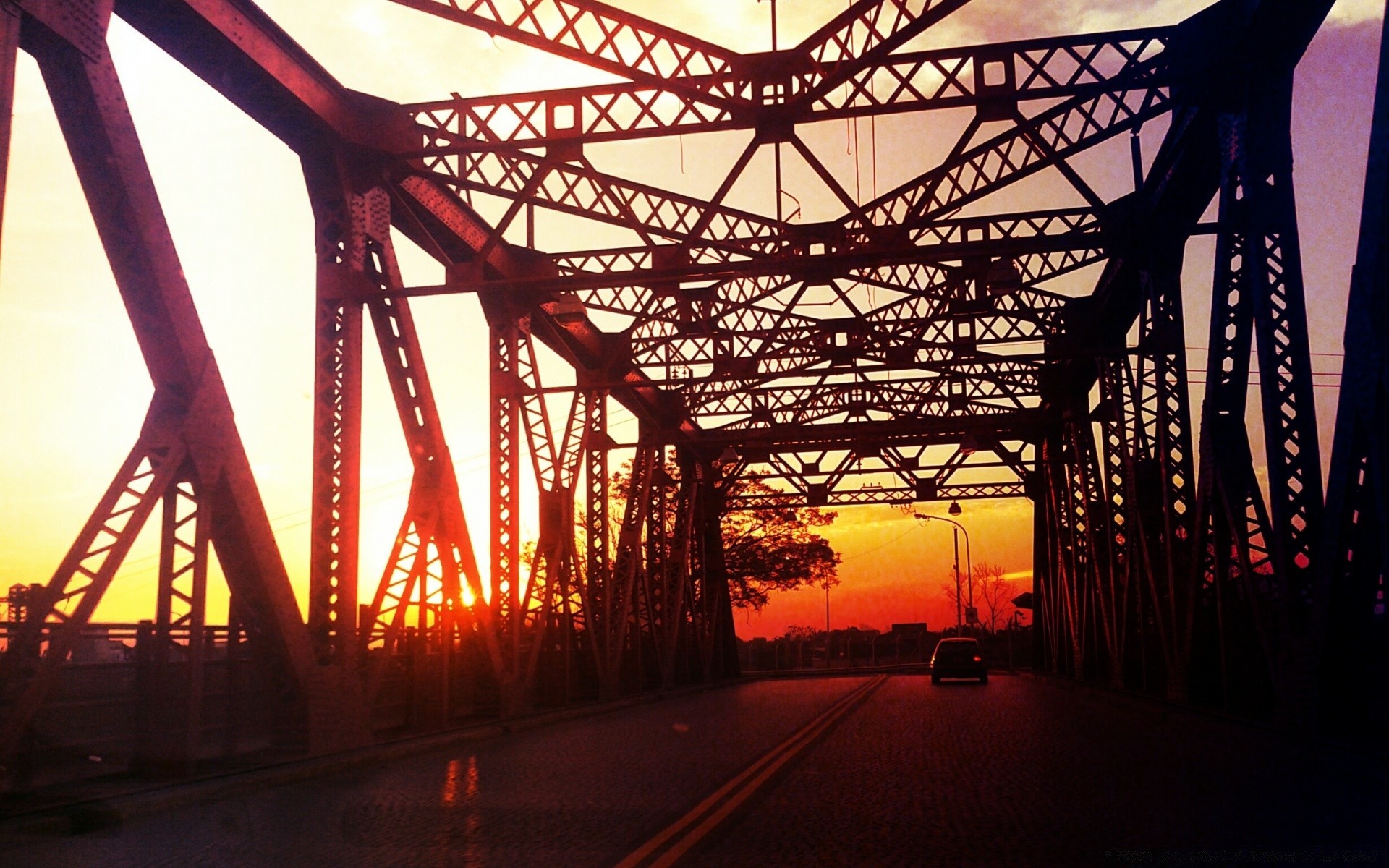 Jasny Zachód słońca przy ogromnym moście