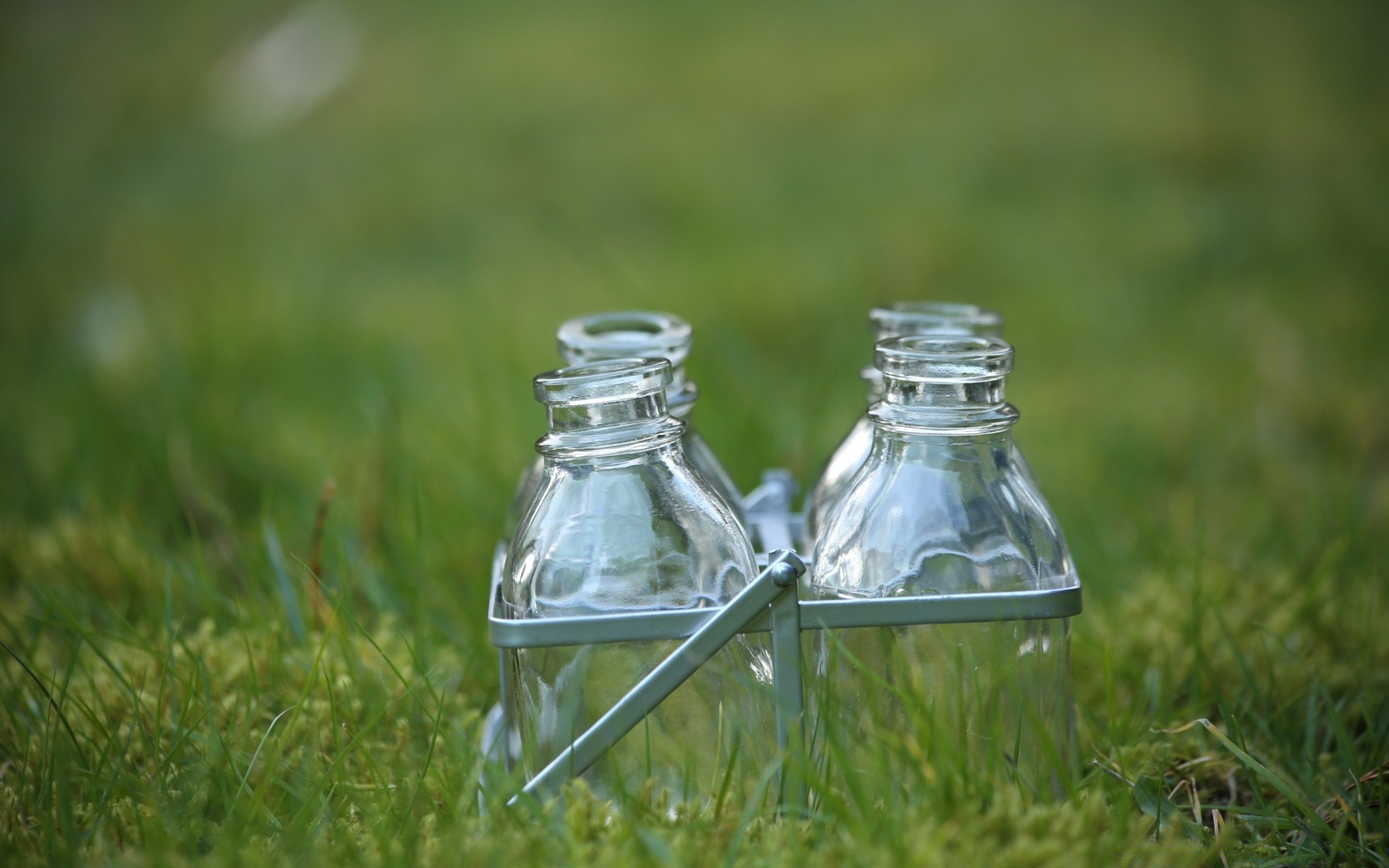 Szklane słoiki na zielonym polu