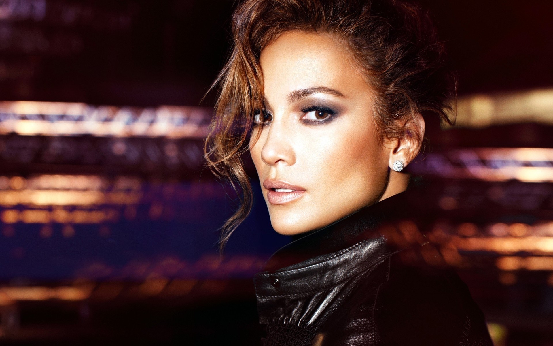 Jennifer Lopez na rozmytym kolorowym tle