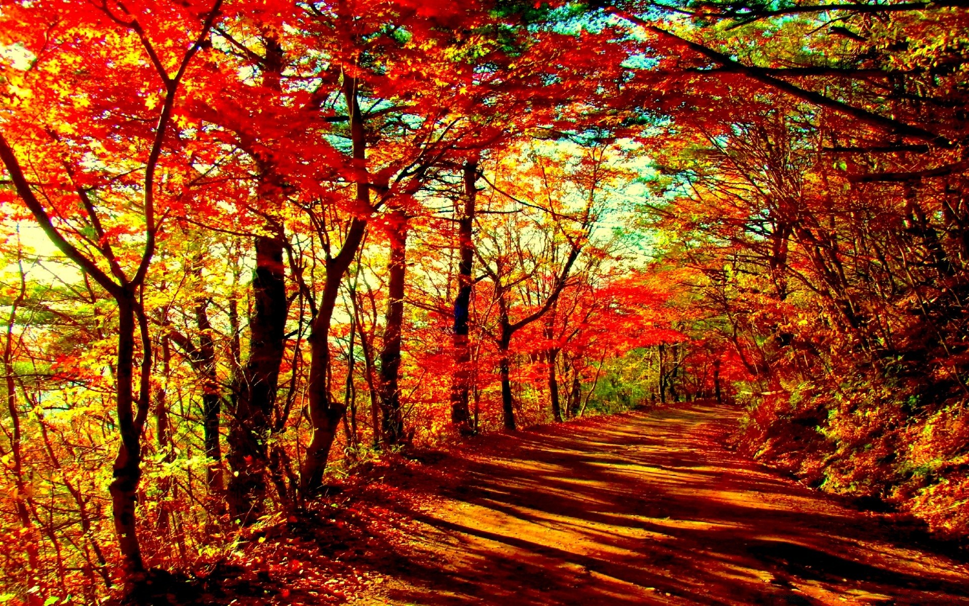 Kosmiczny jesienny krajobraz o zachodzie słońca