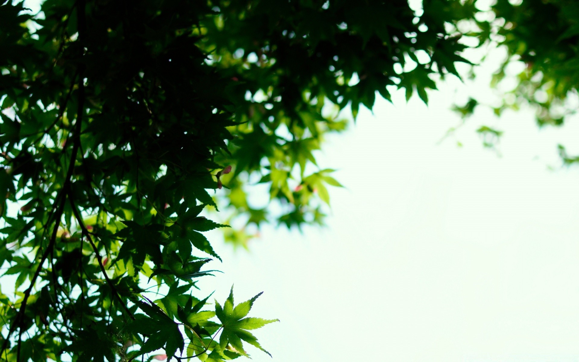 Pomarańczowe liście klonu w jesiennym zachodzącym słońcu