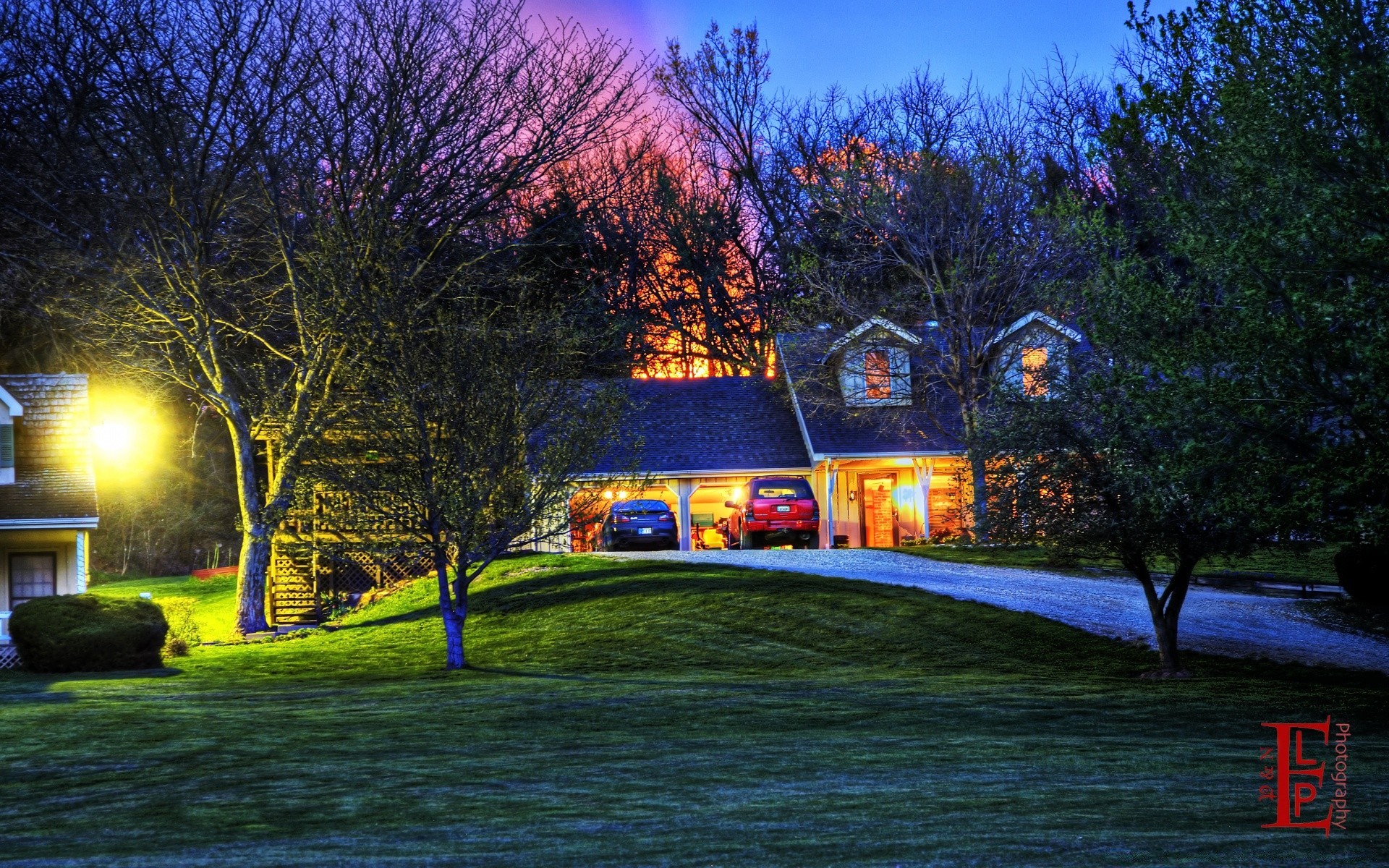 Wieczorny krajobraz domu na świeżym powietrzu