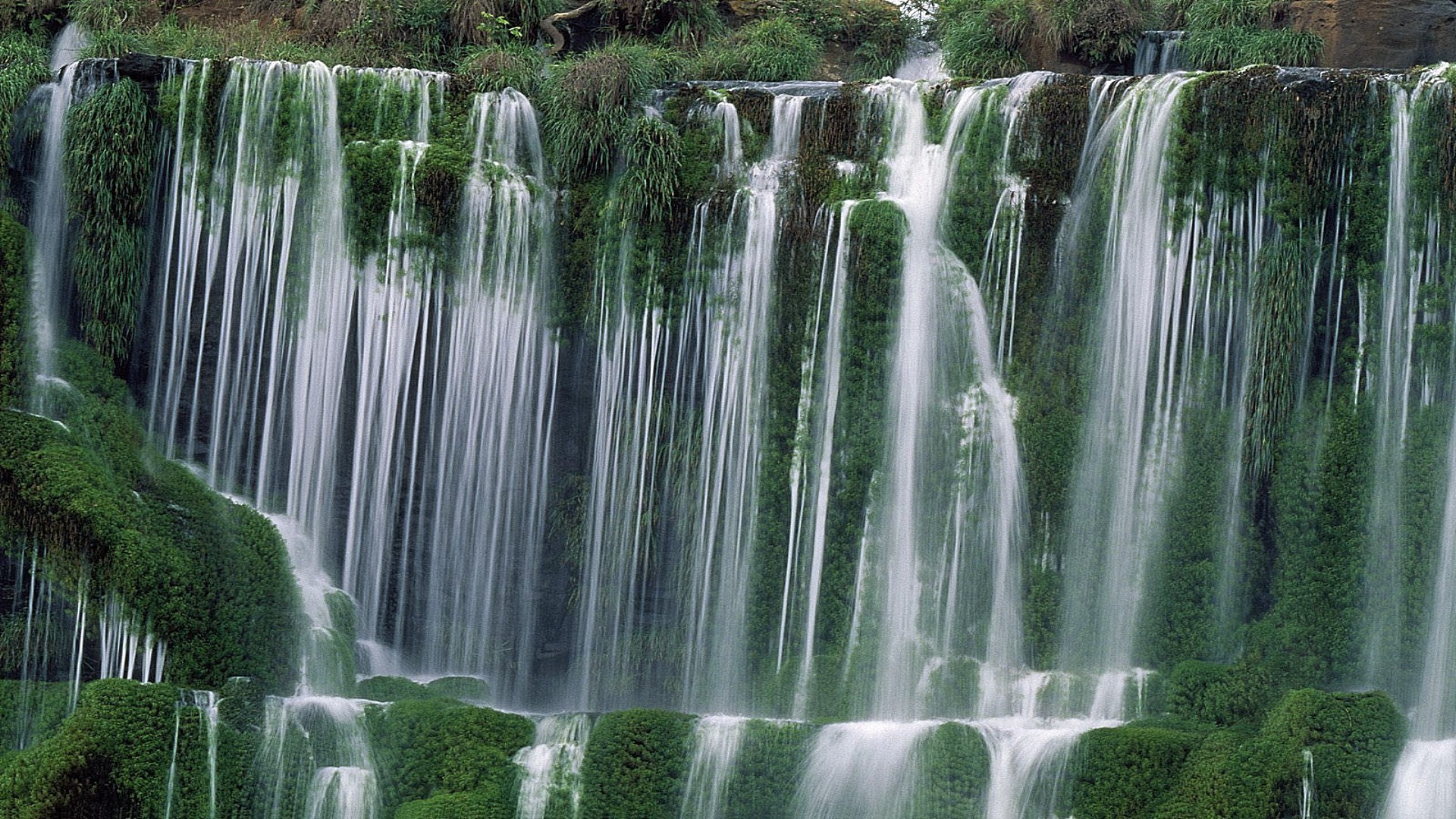 Kaskada wodospadów w zieleni