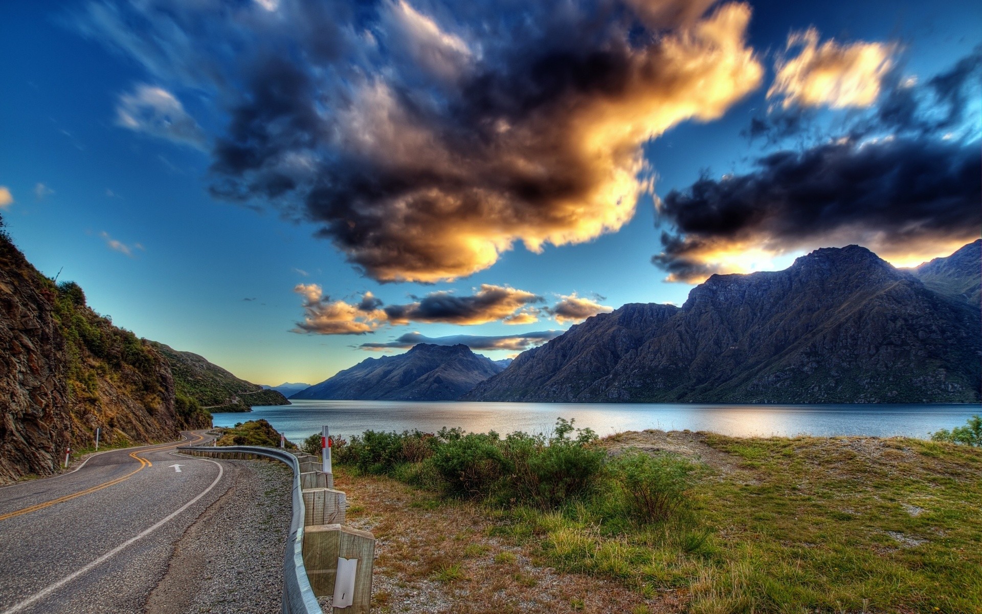 Krajobraz z drogą nad brzegiem górskiego jeziora