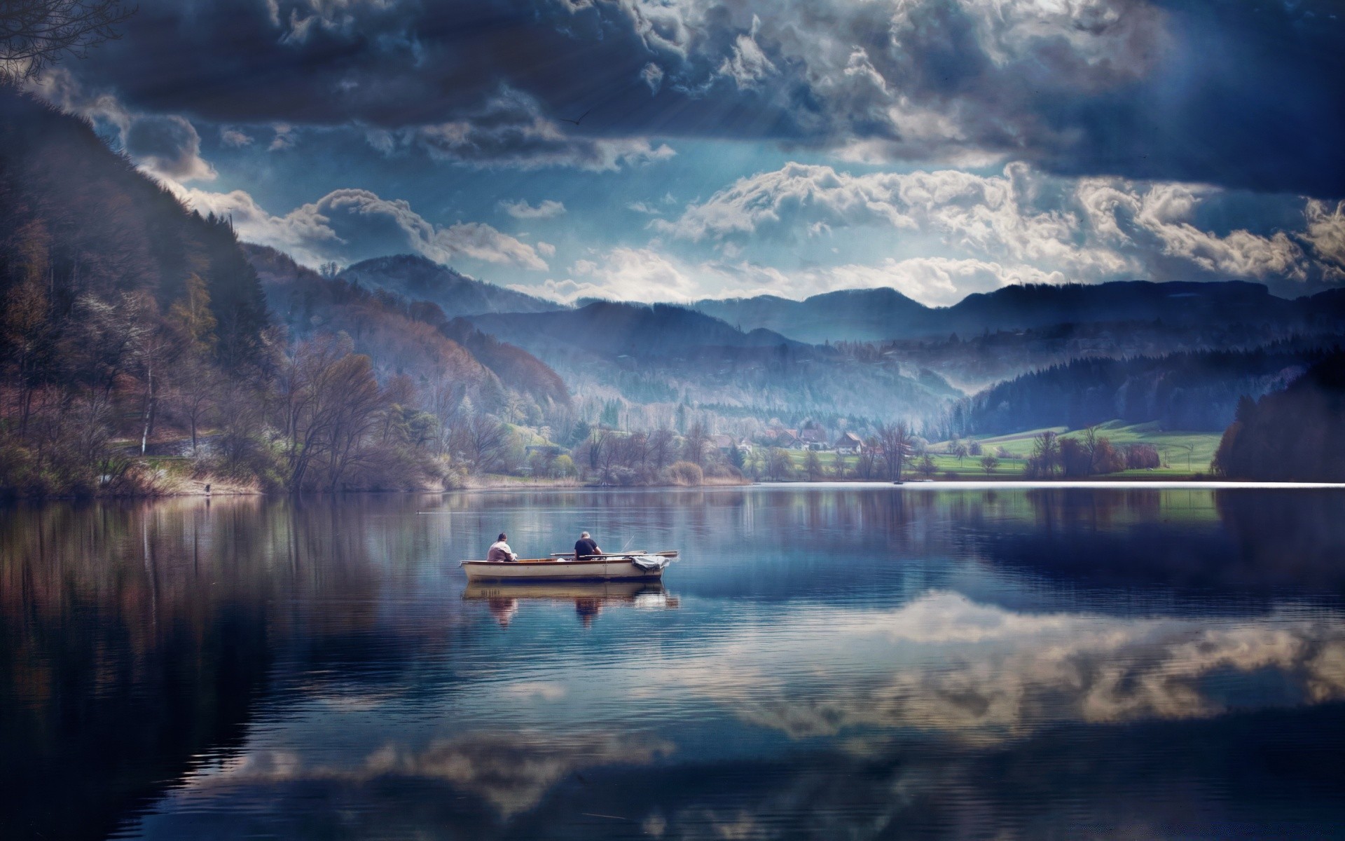 Jezioro i jego eko-życie. Krajobraz szerokokątny