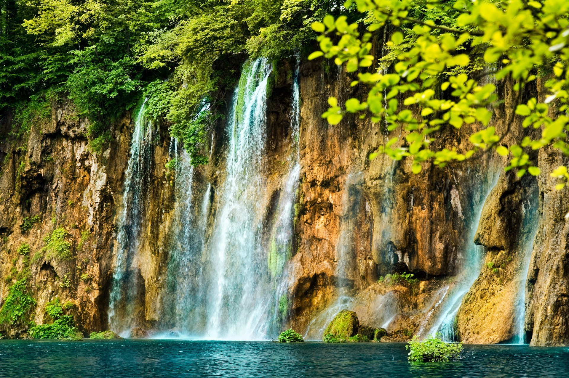Biała piana ciemnej rzeki przepływa przez porośnięte mchem skały