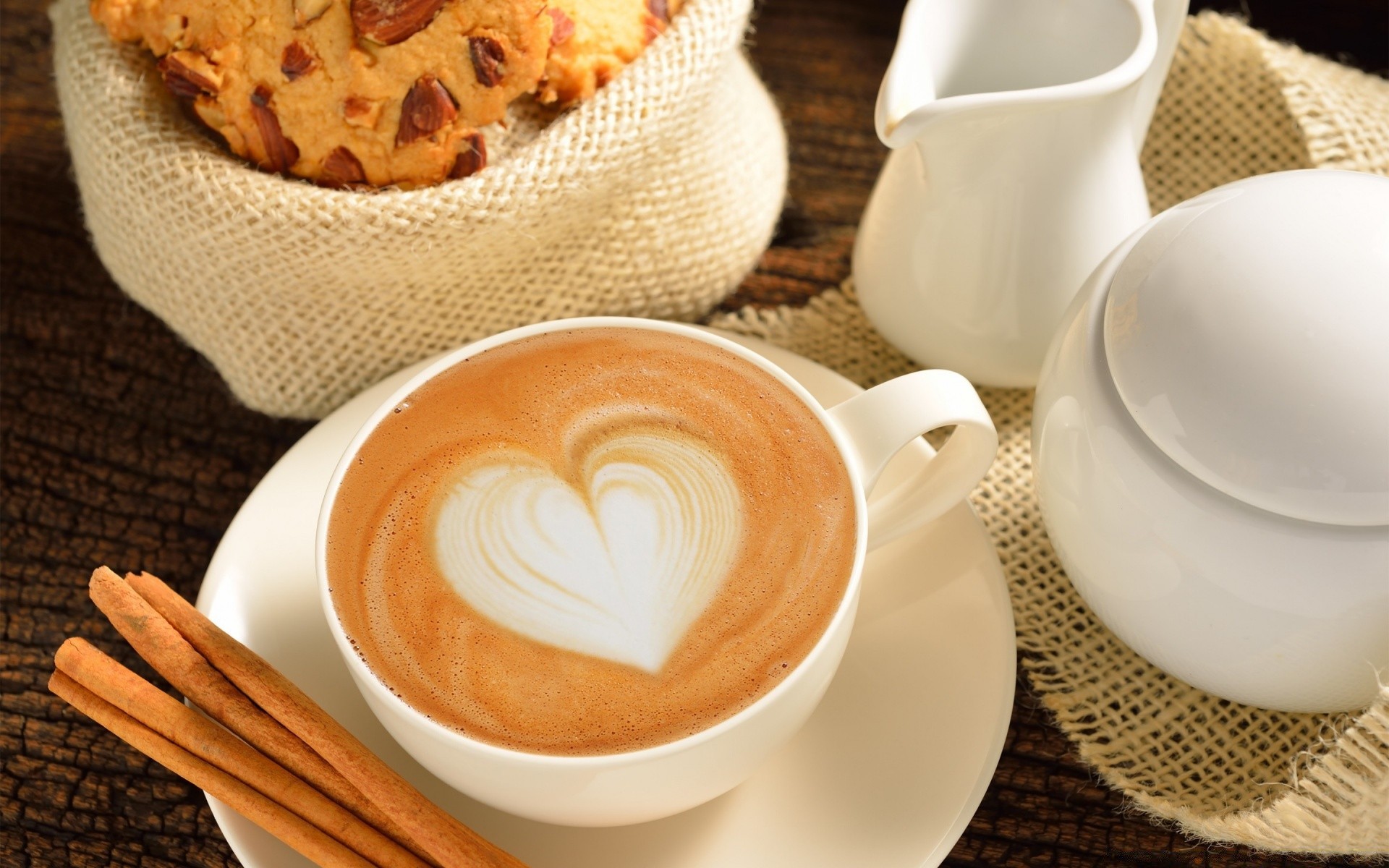 Serce w filiżance kawy. Idealny poranek. Piękna para herbaty
