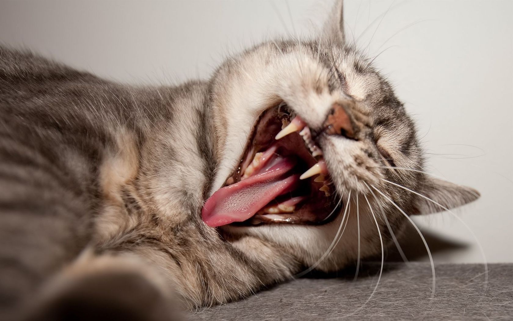 Słodki kot ziewa o wschodzie słońca