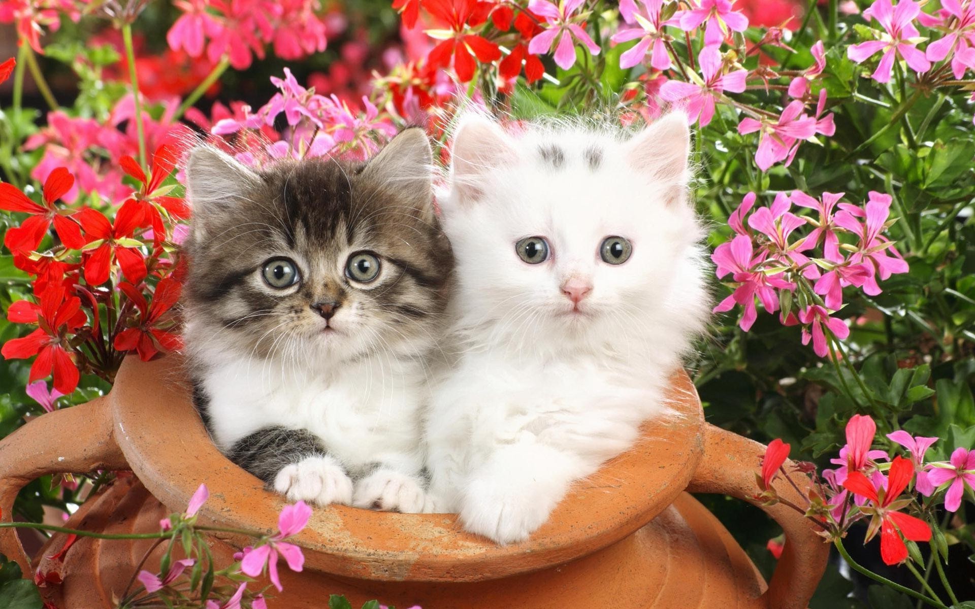 Słodkie zdjęcie dwa koty przed laptopem oglądają filmy o kotach