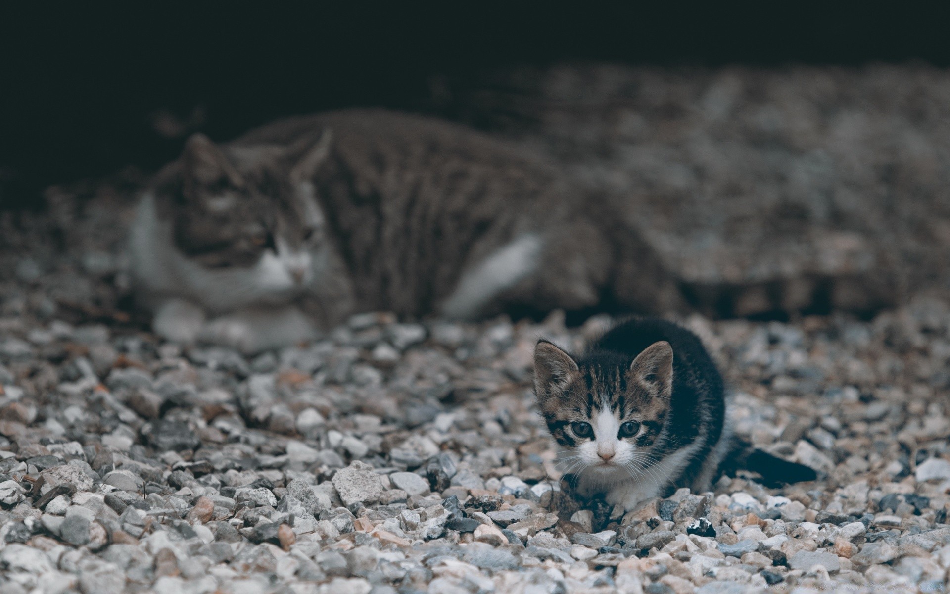 Słodkie koty na ciemnym tle