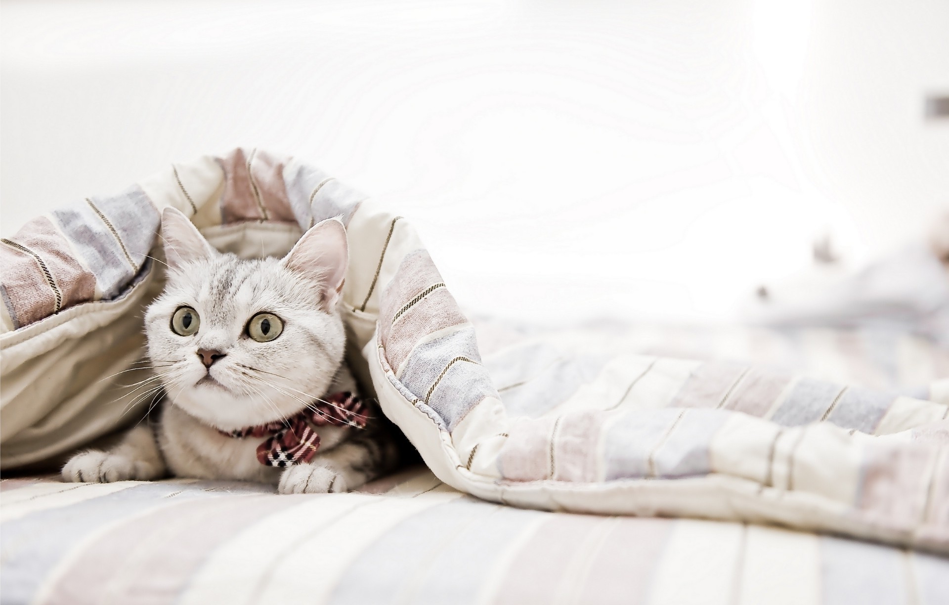 Biały kot ze zdumionymi oczami