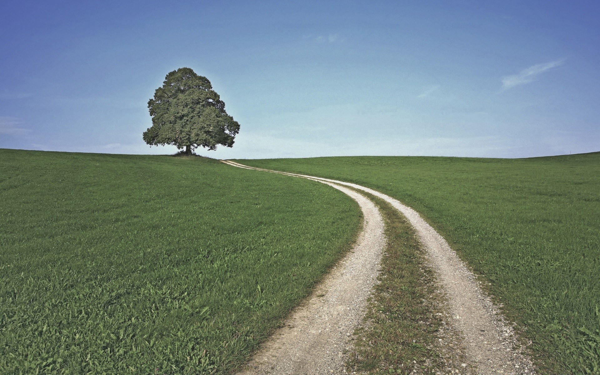Jesienny krajobraz. Drzewo przy żywopłocie