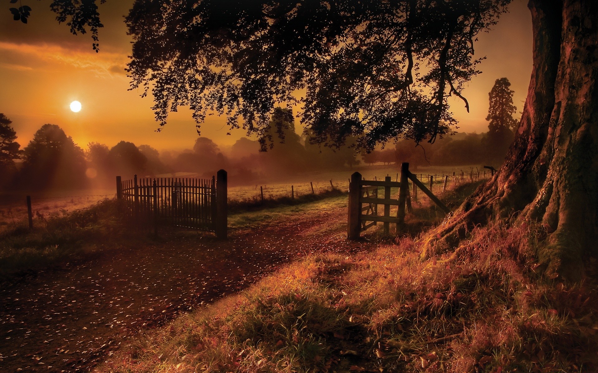 Zachód słońca na polu, krajobraz z samotnymi kamieniami