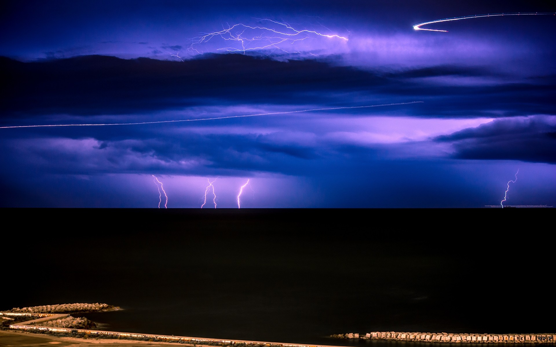 Piękny krajobraz z niebem, na którym jest zachód słońca i Ocean