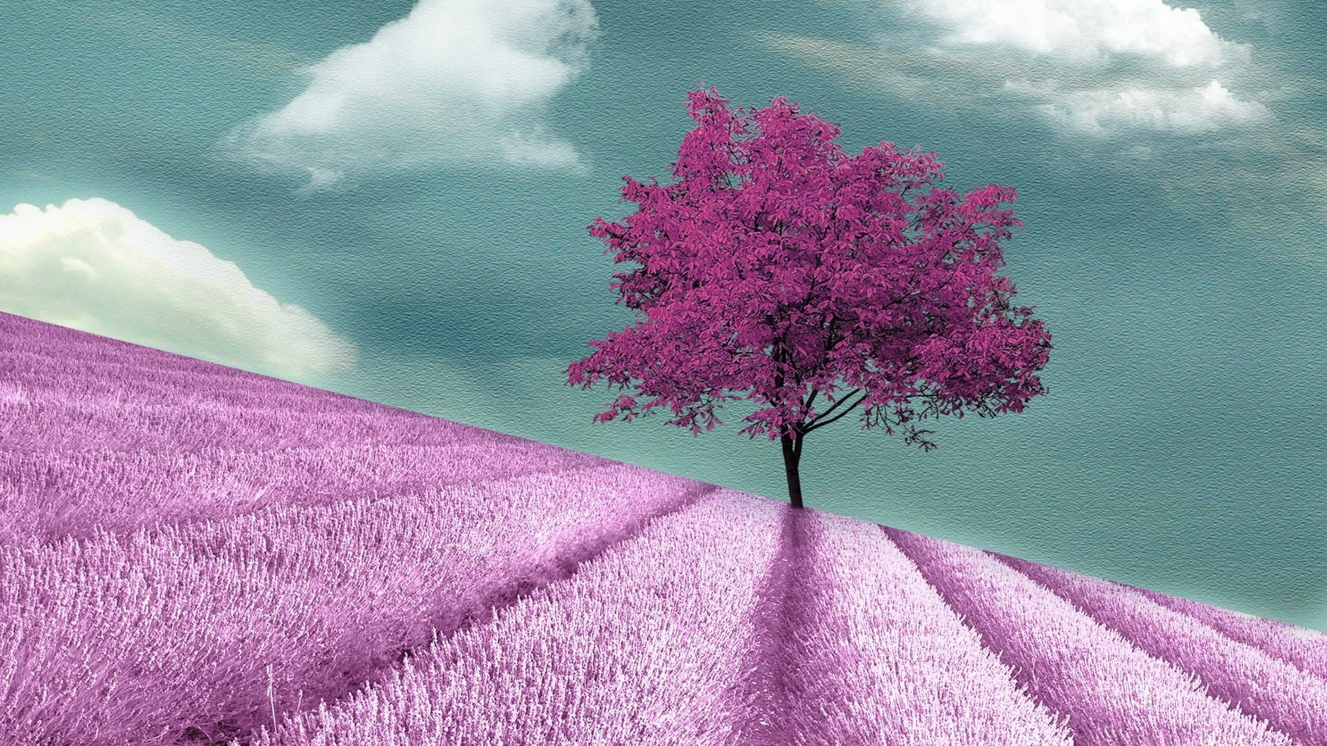 Połączenie fioletowych odcieni w letnim krajobrazie na tle nieba