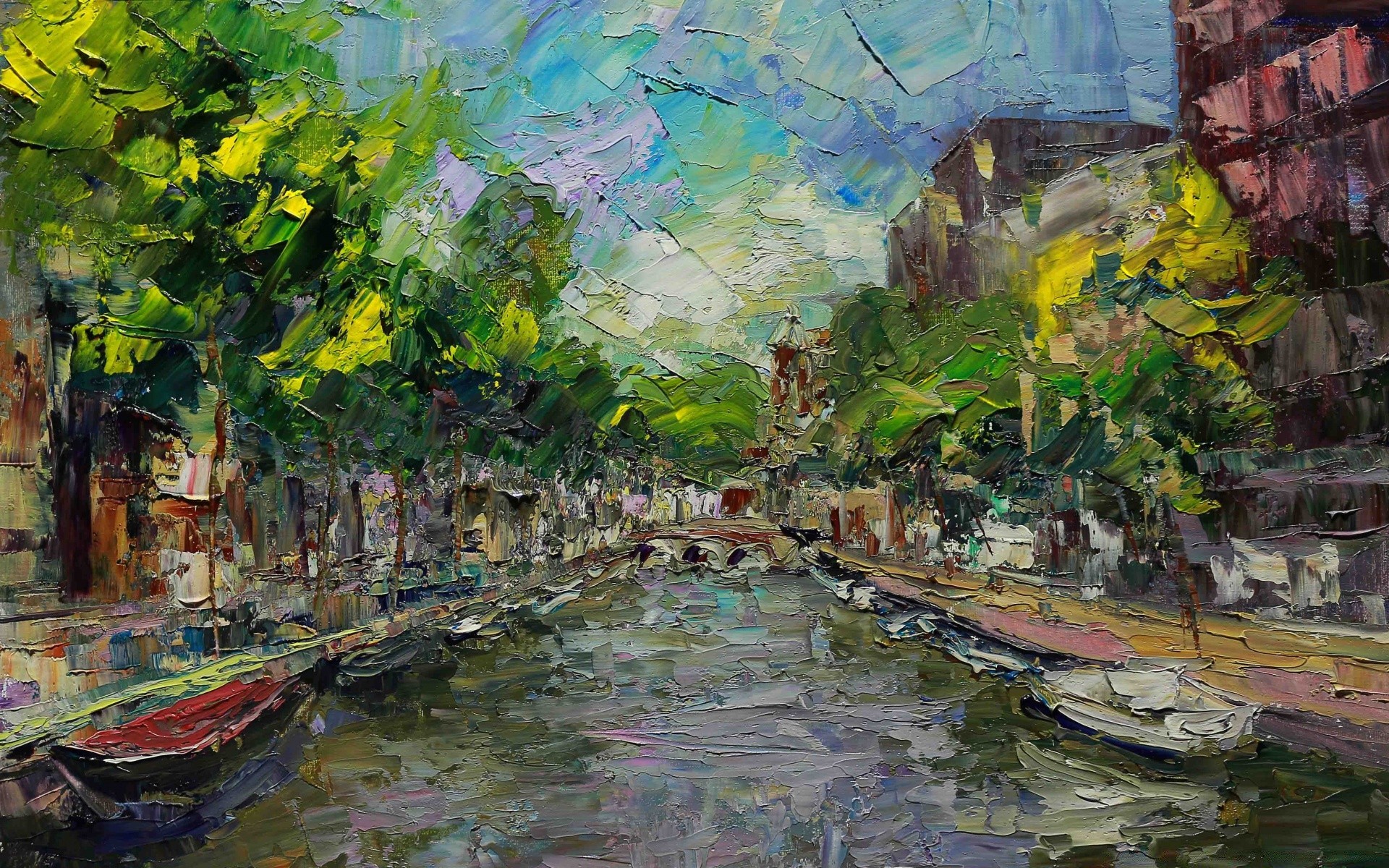 Rysunek farbami olejnymi z wizerunkiem ulicy