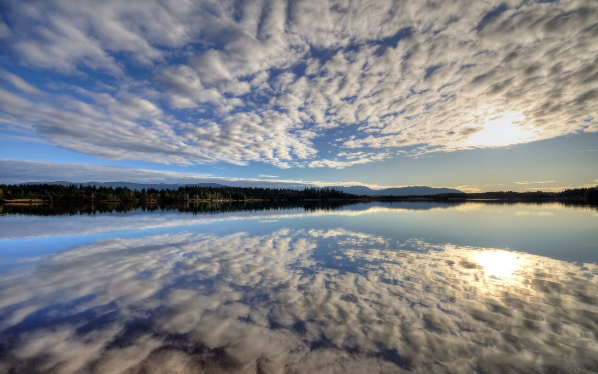 Słońce i chmury nad powierzchnią wody