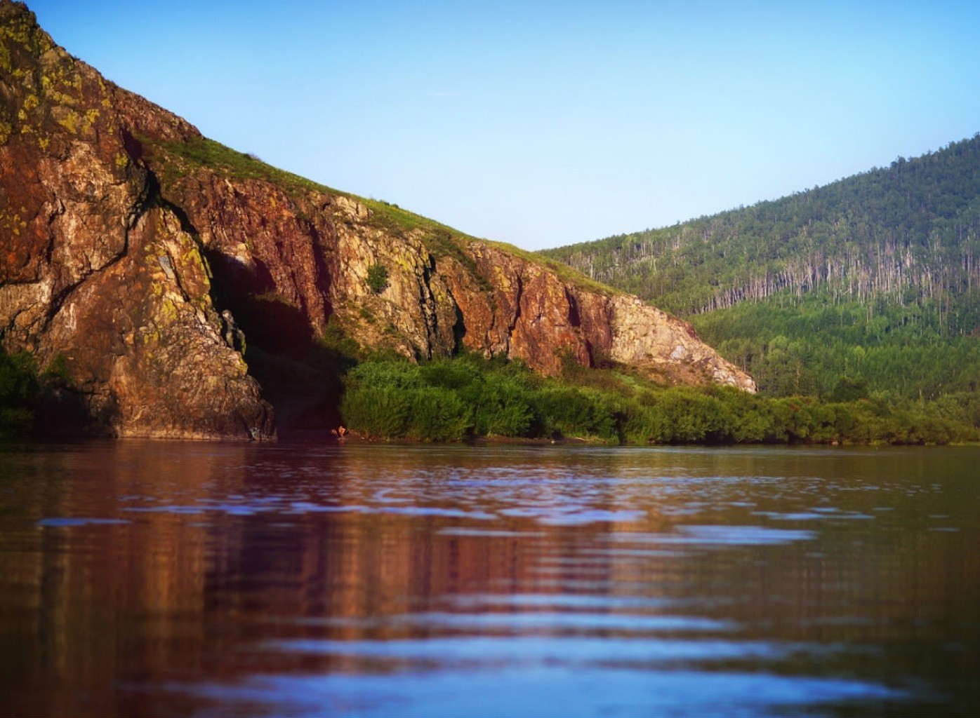Ognisty Zachód słońca odbija się w powierzchni wody jeziora