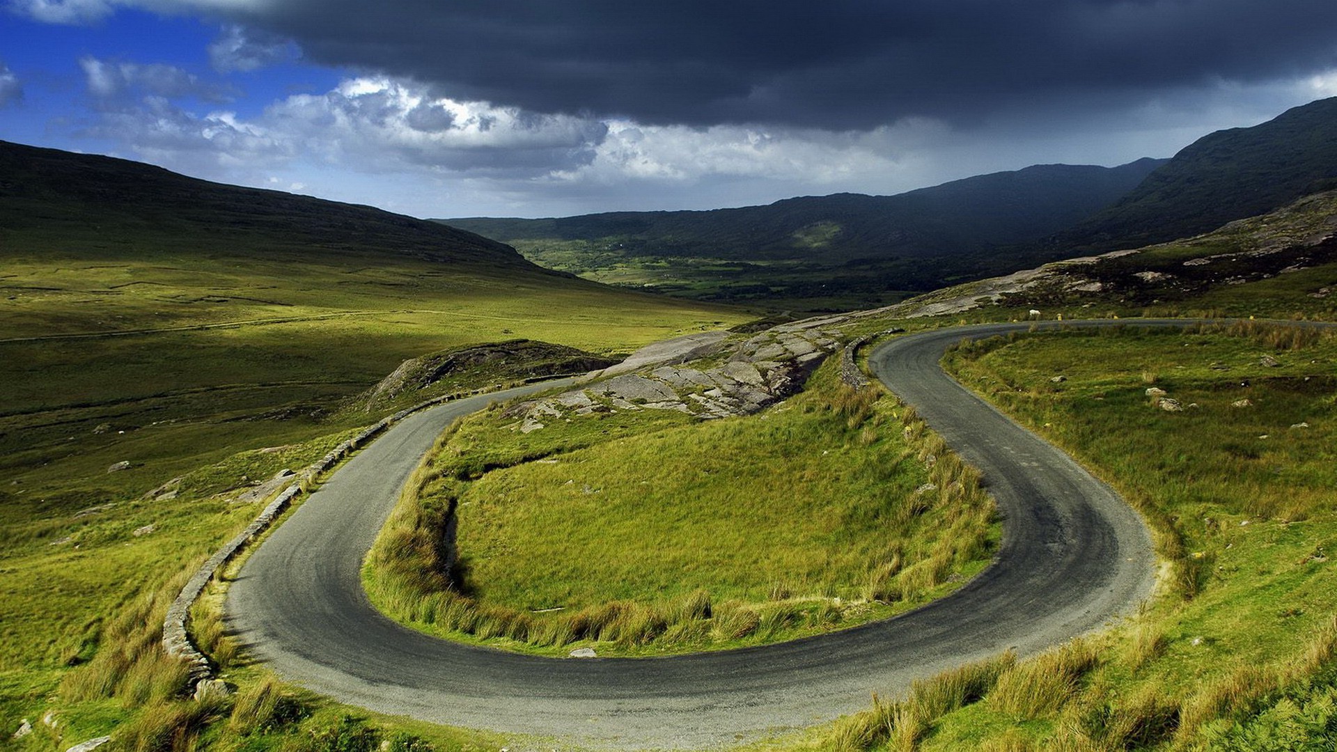 Górska droga wśród zielonych łąk