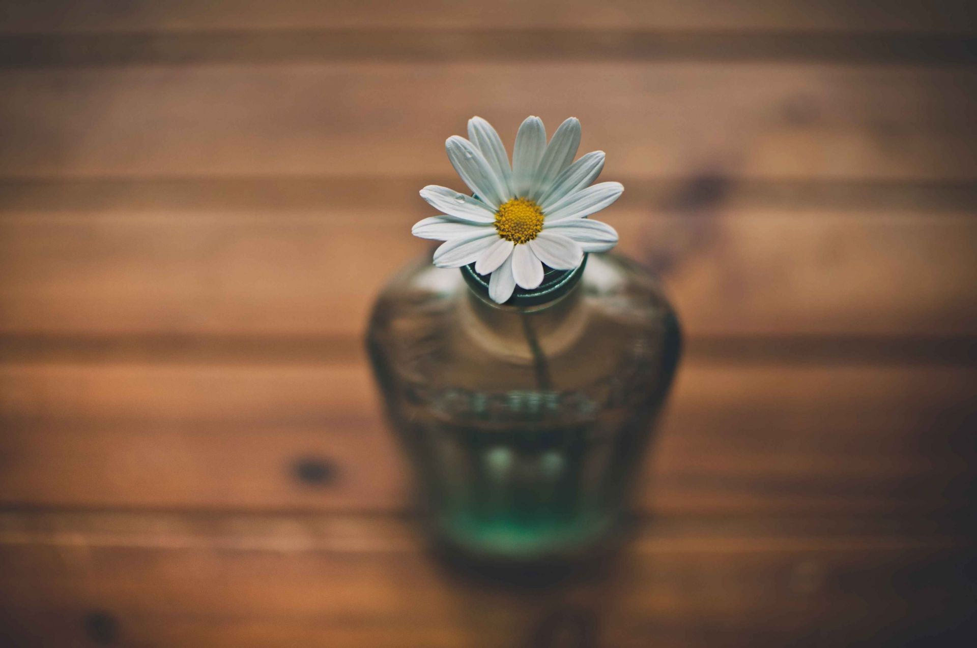 Kwiat w wazonie na abstrakcyjnym tle w zimnych kolorach