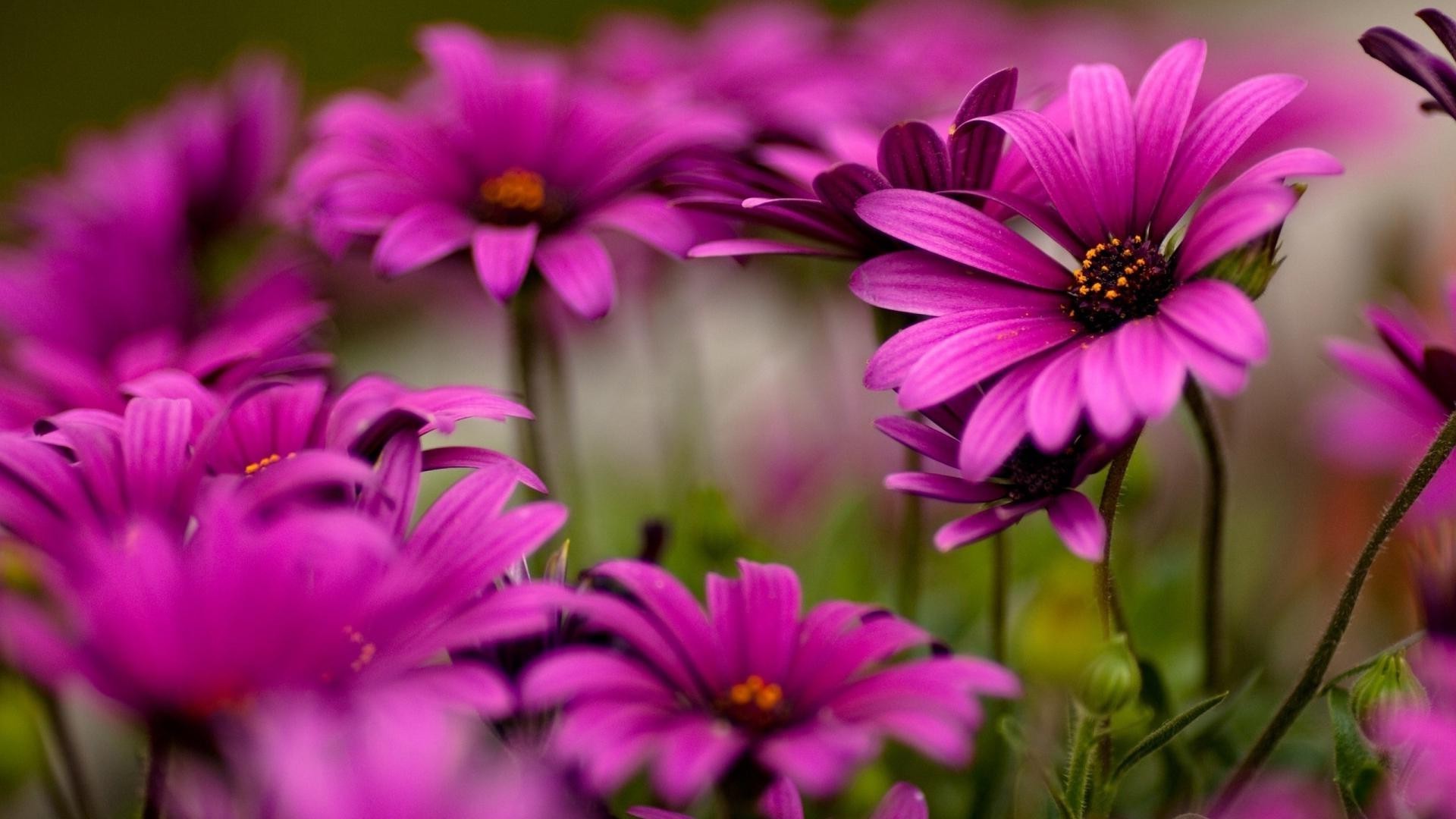 Małe liliowe kwiaty na rozmytym tle