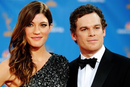 Szczęśliwa uśmiechnięta kobieta na tle czerwonego dywanu