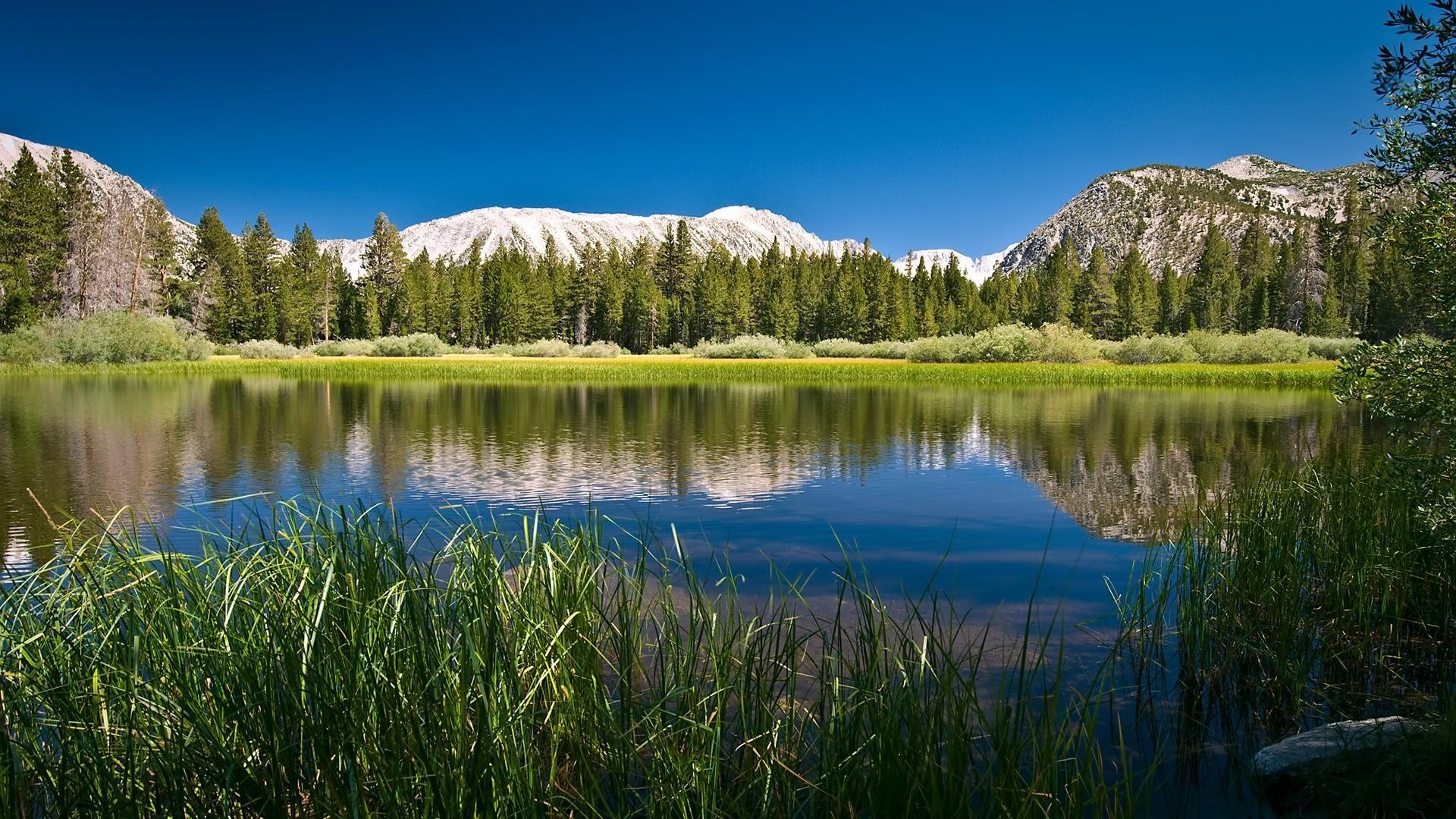 Krajobraz jezioro las trawa niebo chmury