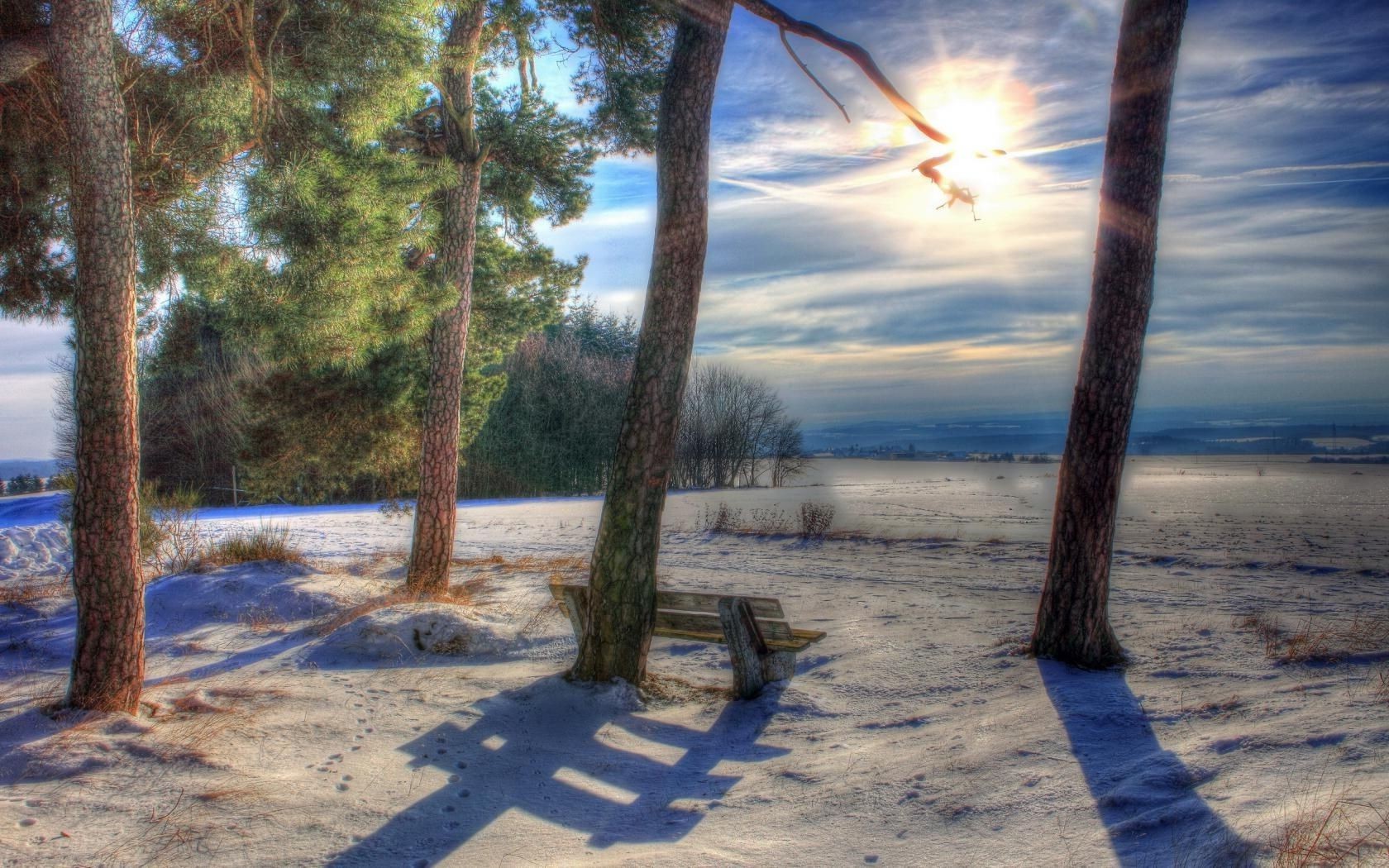 Krajobraz. Błękitne niebo. Chmury na niebie. Zielone drzewo. Zielona trawa