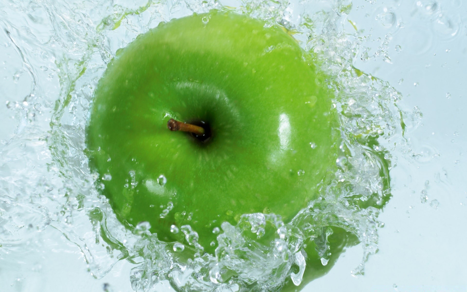 Zielone jabłko w czystej wodzie