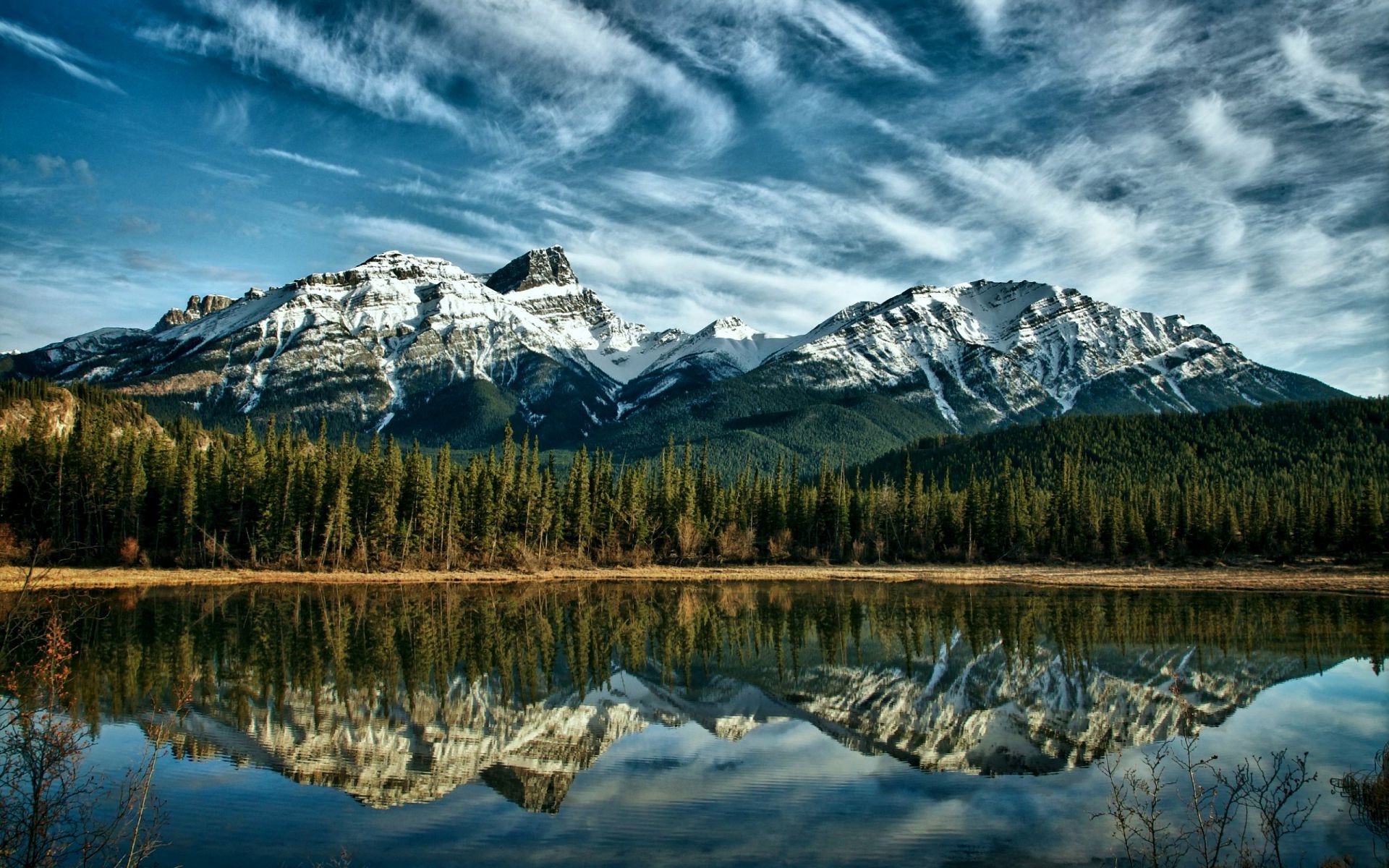 Odbicie gór w krystalicznie czystym jeziorze
