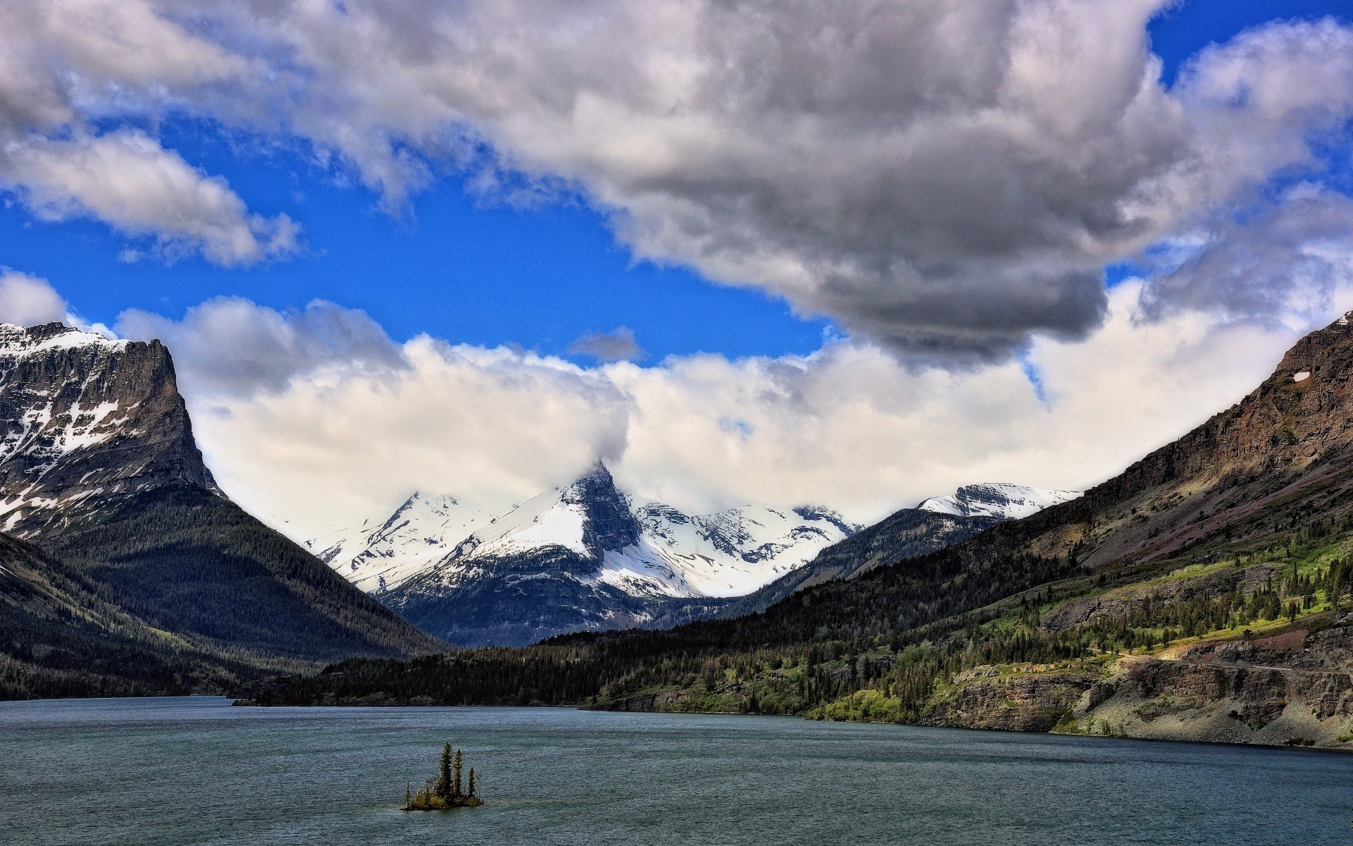 Pasmo górskie z jeziorem w odcieniach błękitu