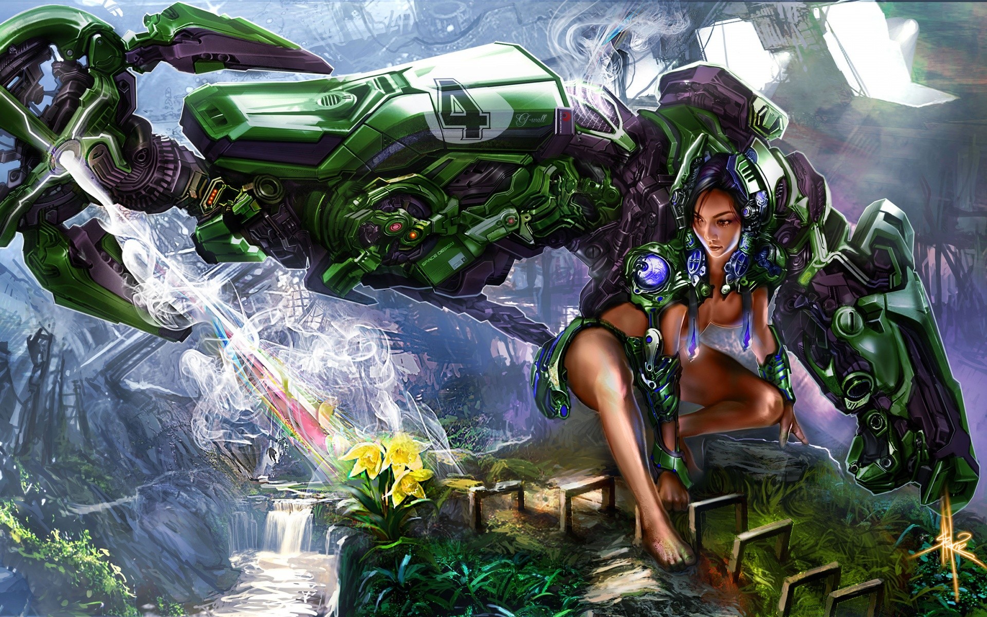 Krajobraz Fantasy, dżungla w nocy, wodospad i rzeka