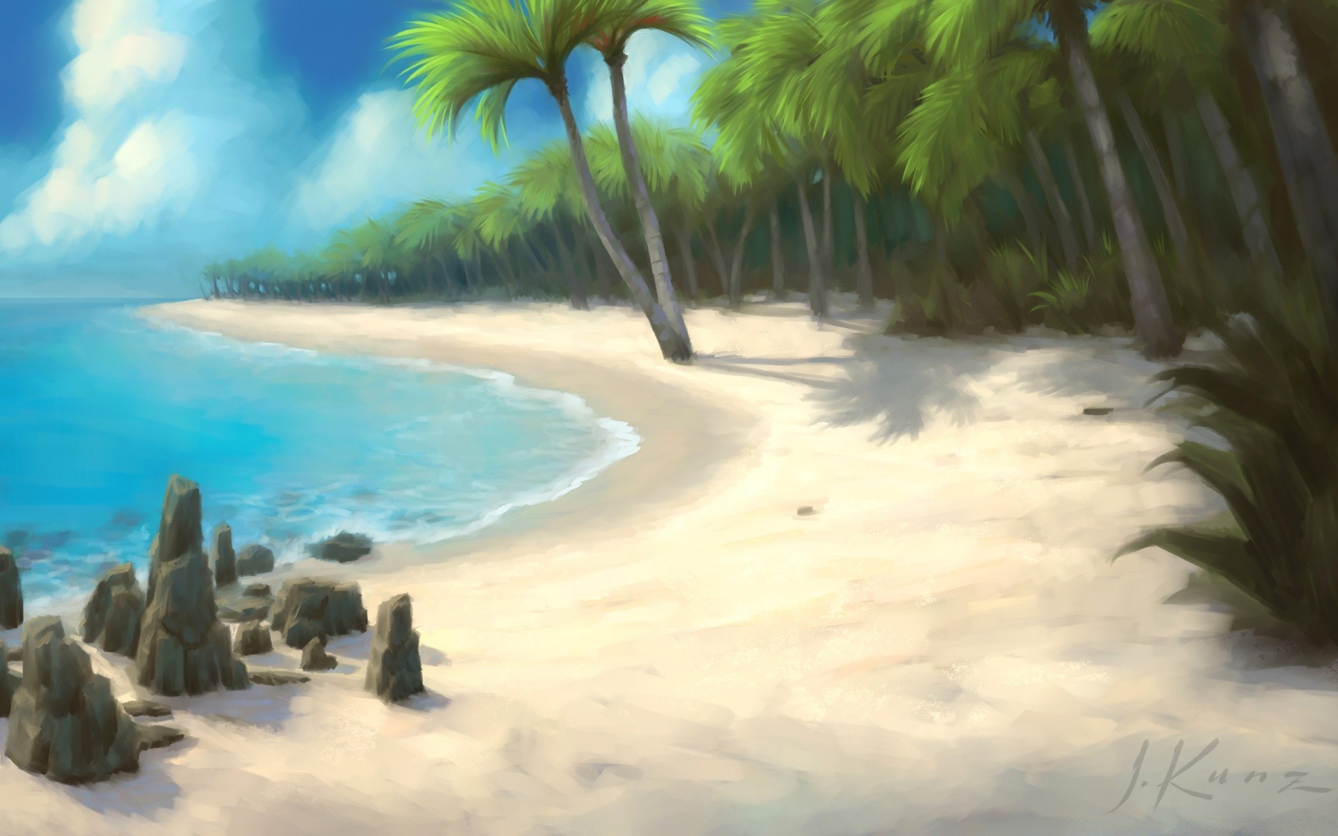 Malowana tropikalna plaża z palmami