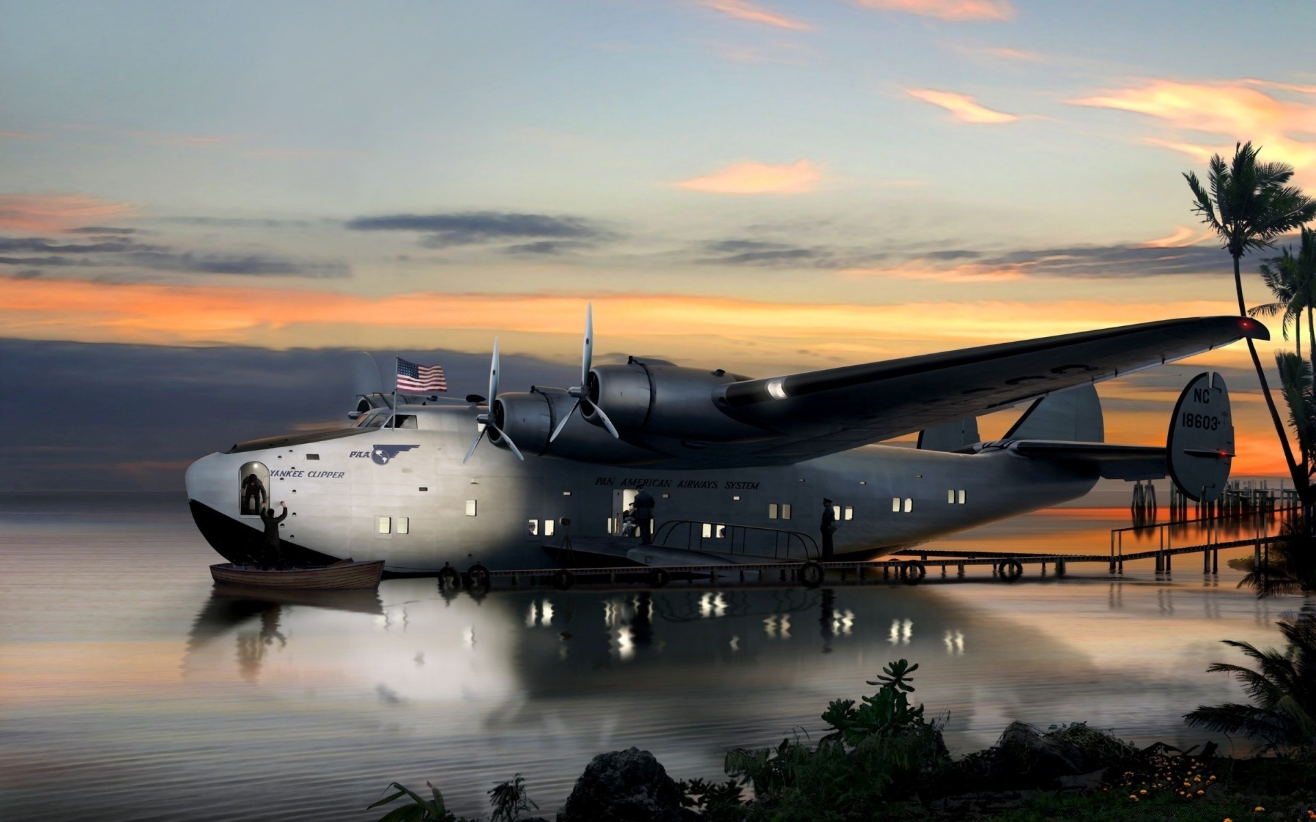 Majestatyczny samolot w pobliżu cichej Wyspy