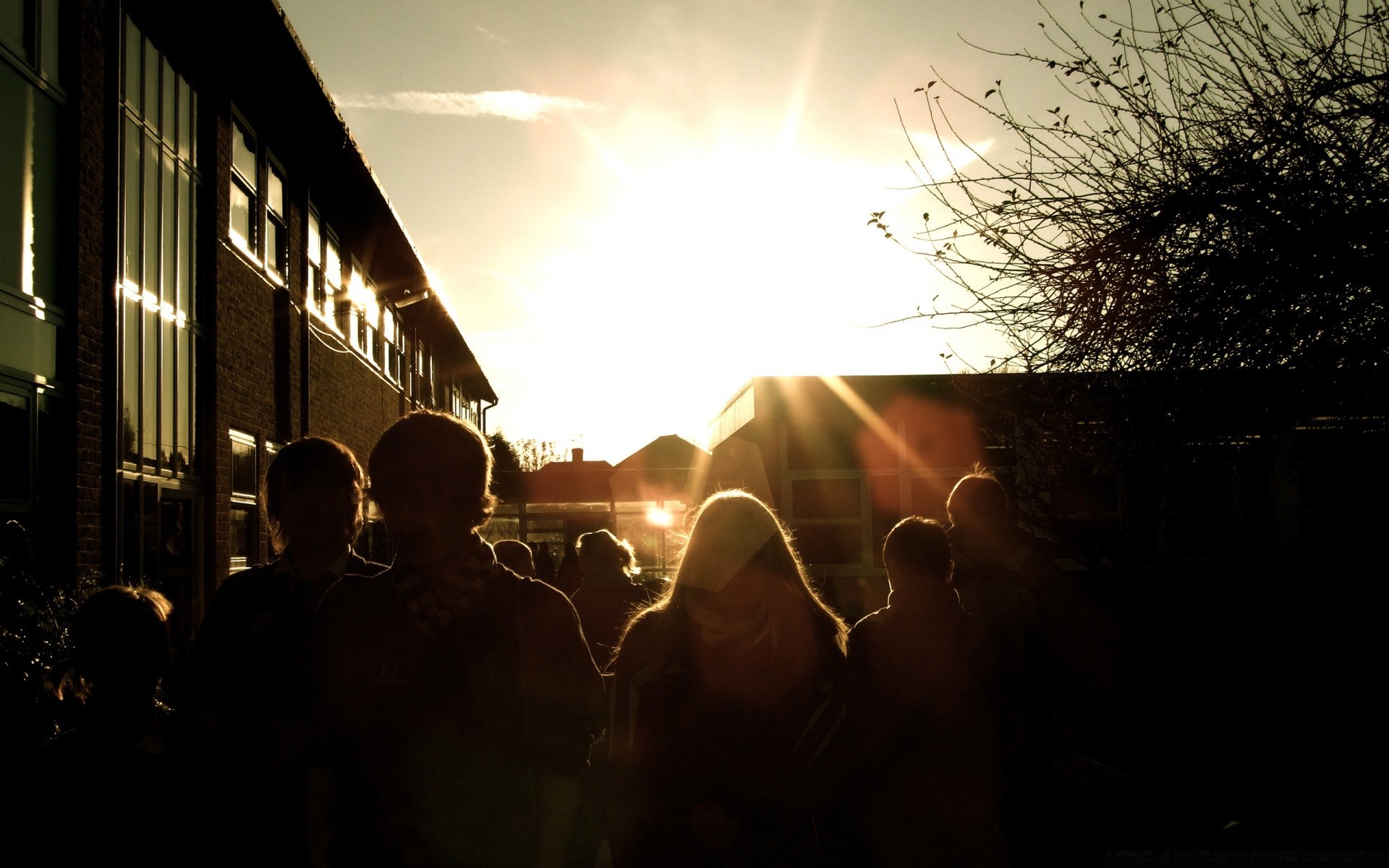 Romantyczne zdjęcie sylwetki ludzi o zachodzie słońca