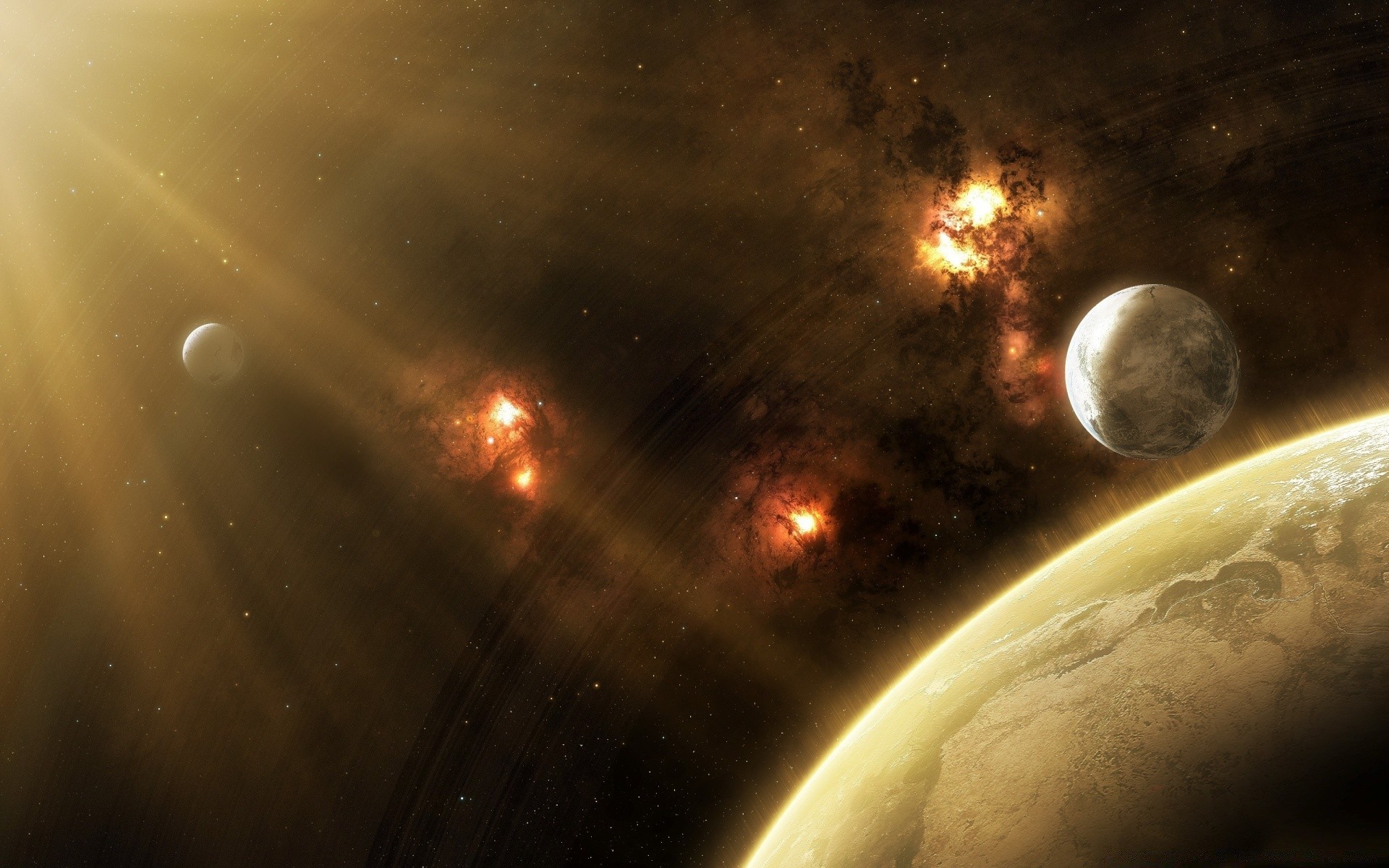 Planeta w płomieniach wśród asteroid