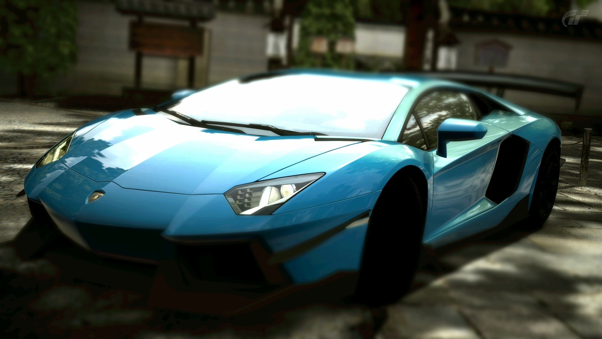 Sportowy błyszczący samochód na ulicy w pobliżu małego budynku