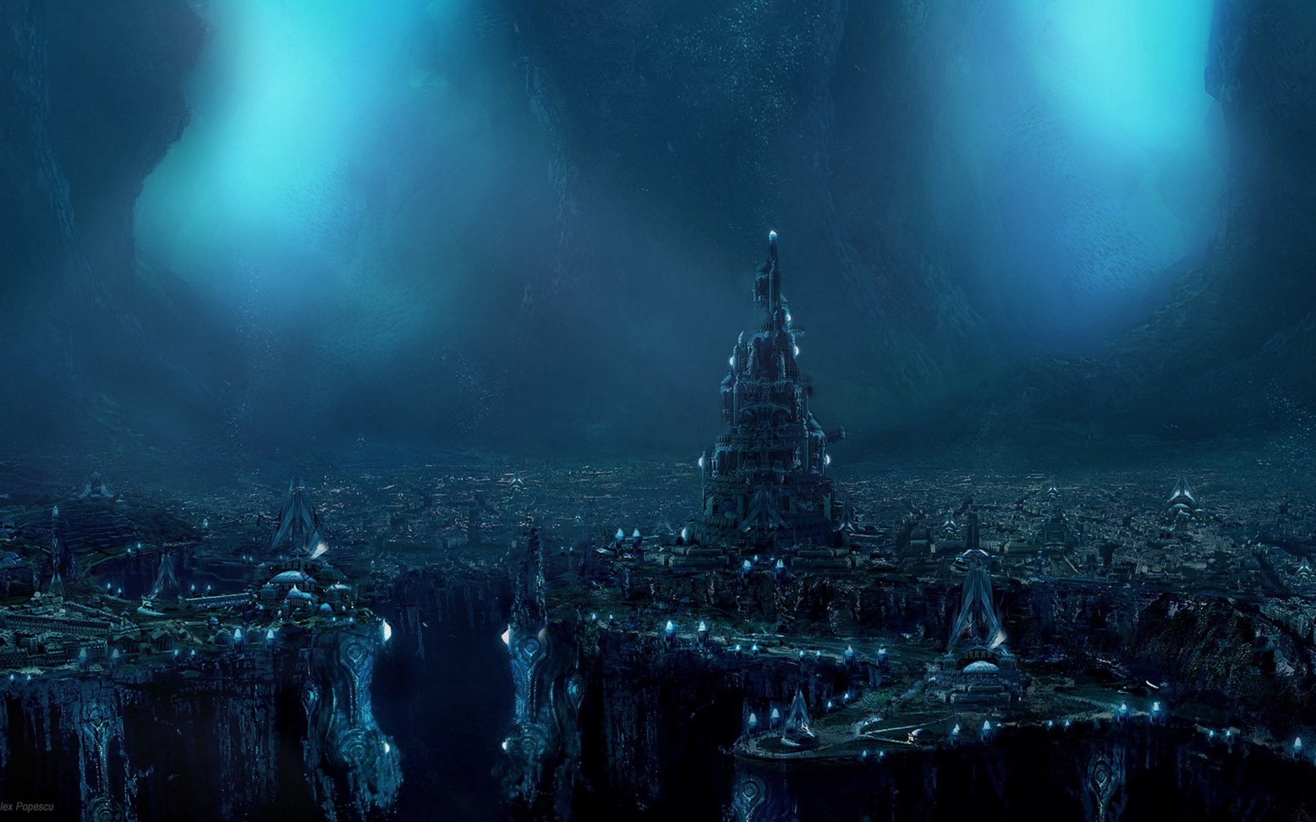 Bajkowe miasto. Niebieskie wzory na ciemnym tle