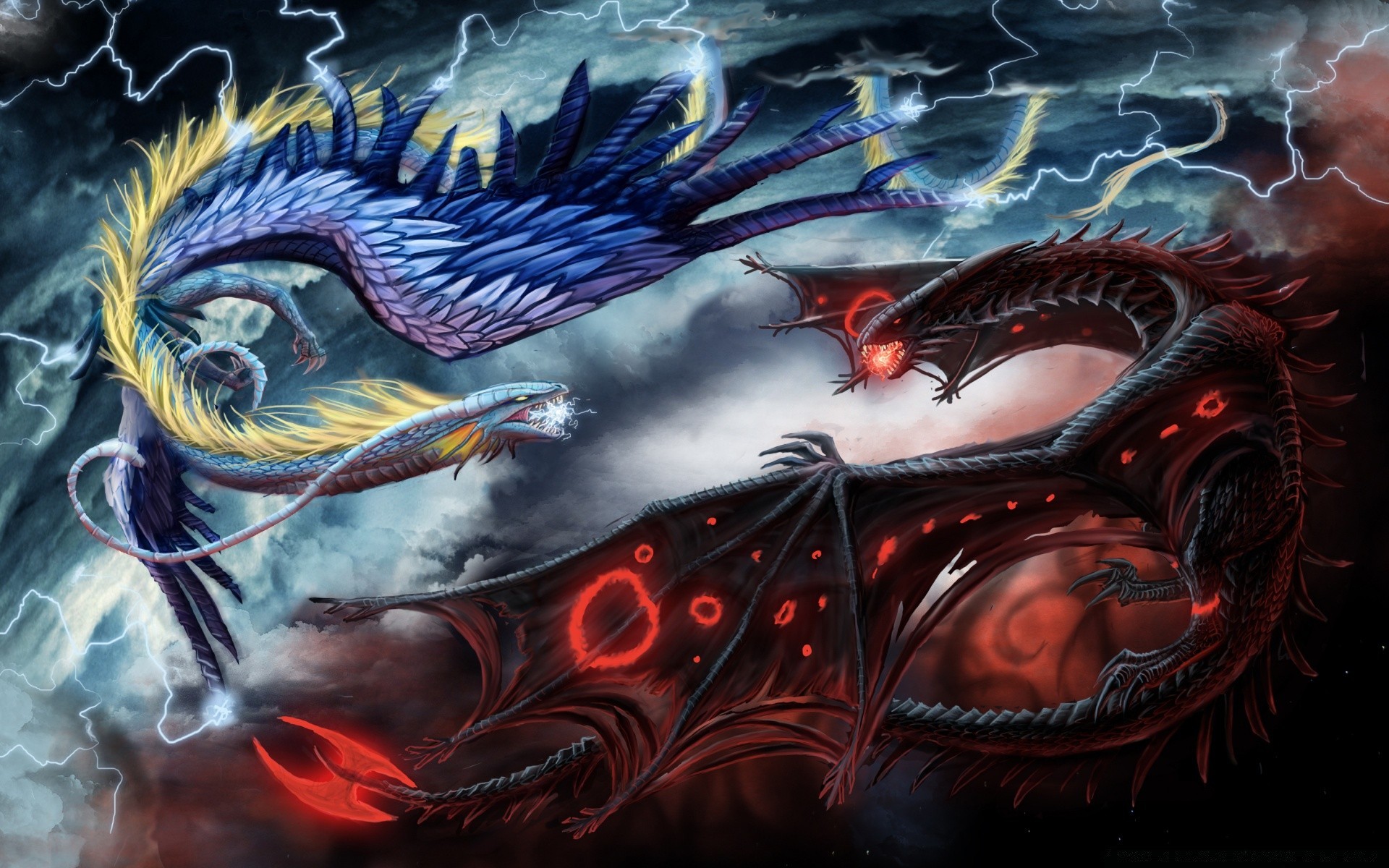 Bitwa smoków ognia i grzmotów. Smoki FANTASY. Żywioł