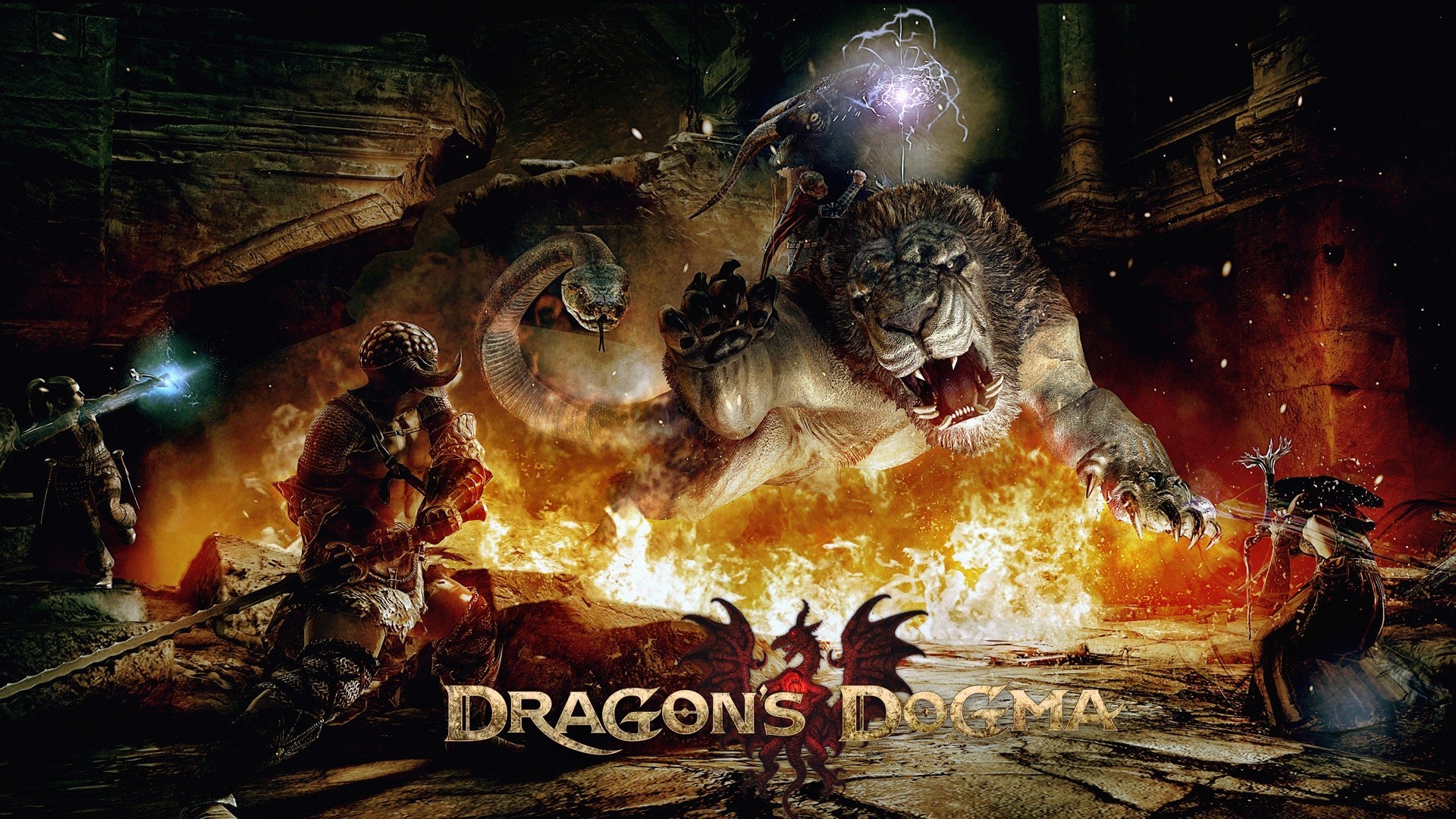 Smok otoczony płomieniami rzucił się