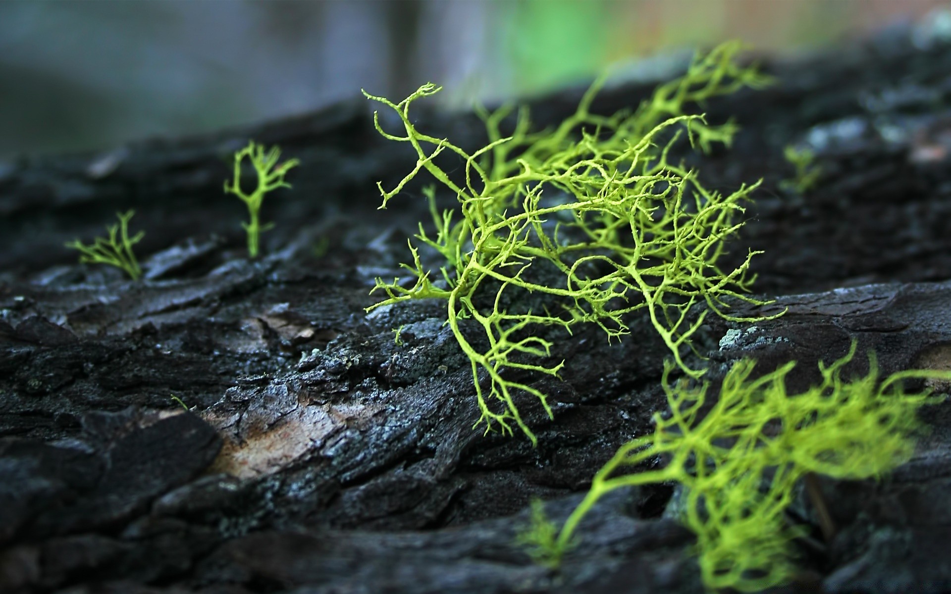 Makrofotografia mchu na drzewie