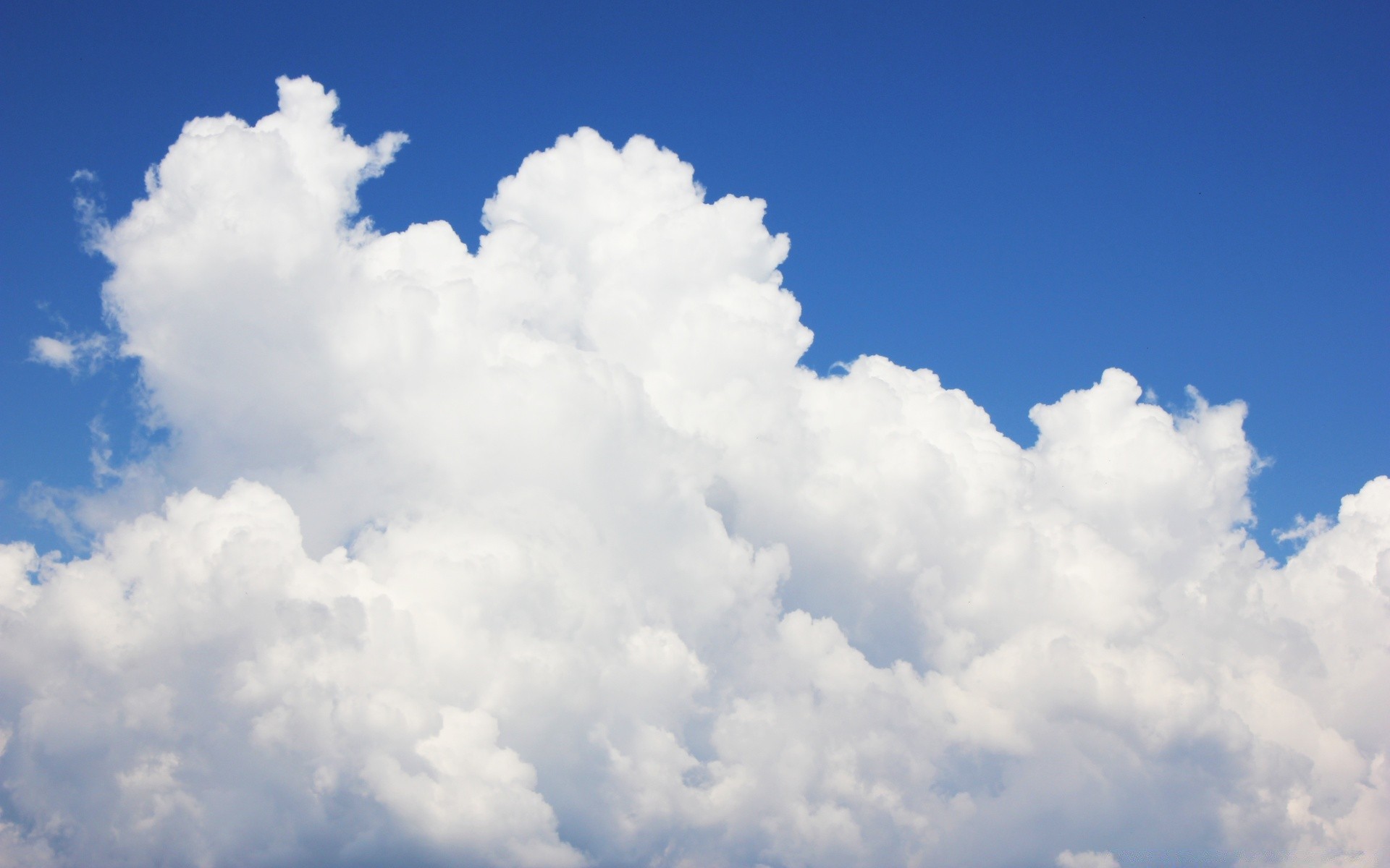 Puszyste śnieżnobiałe chmury na błękitnym niebie