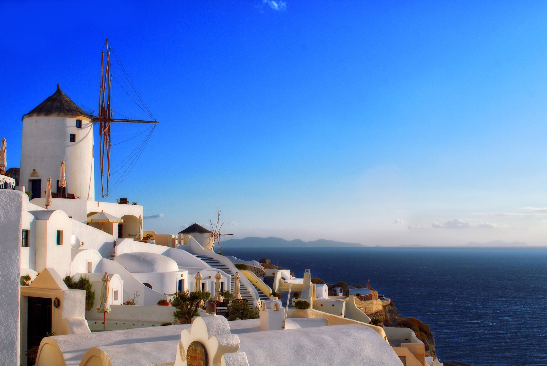 Śnieżnobiała Latarnia morska na błękitnym niebie nad wodą