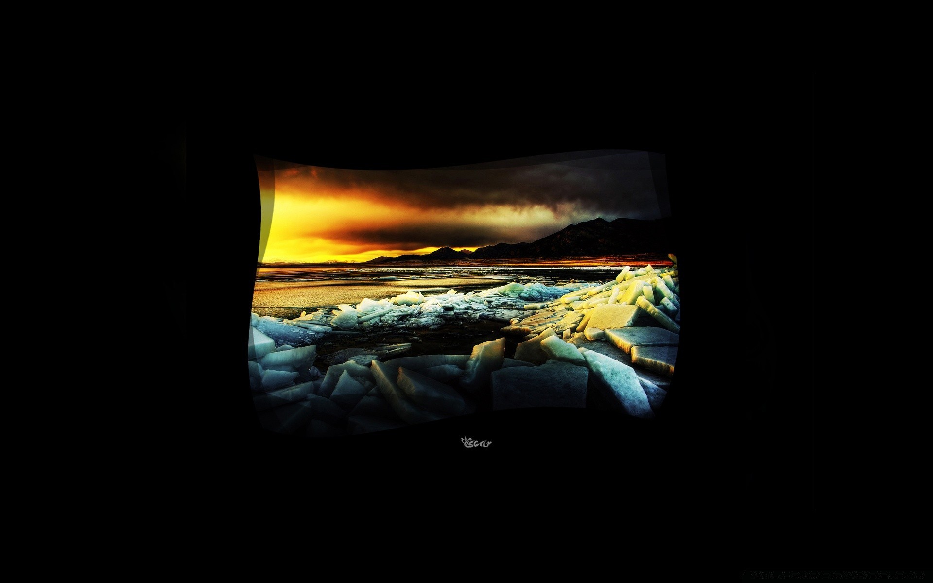 Krajobraz na czarnym tle. Zachód Słońca w Arktyce