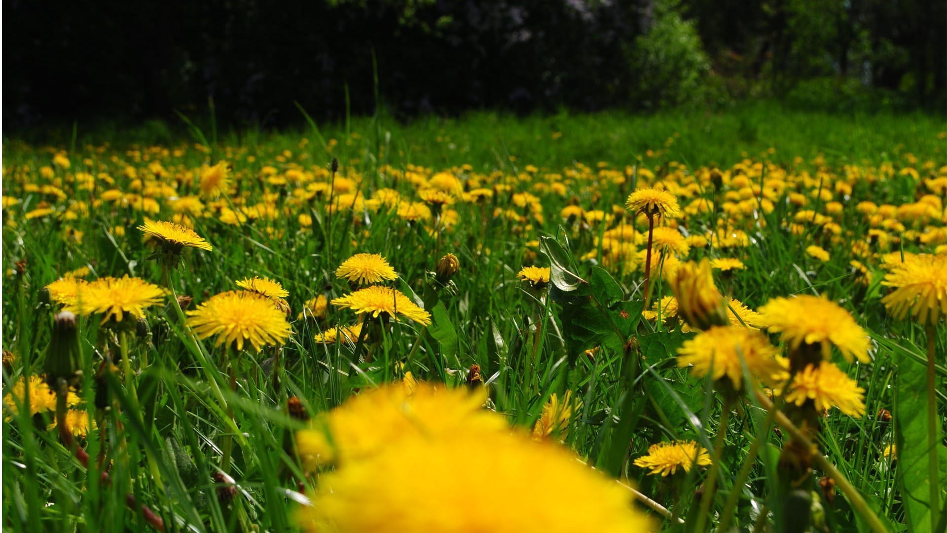 Polana żółtych mniszek lekarskich latem
