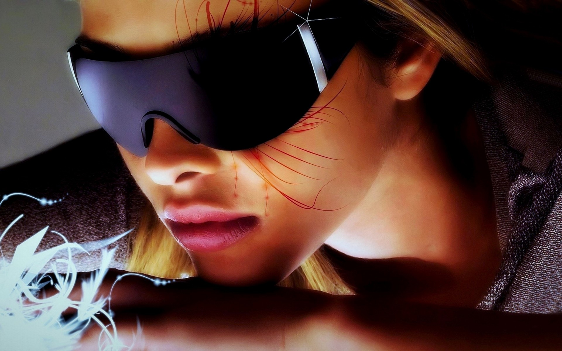 Dziewczyna w nieprzeniknionych okularach i bliznach na jedno oko