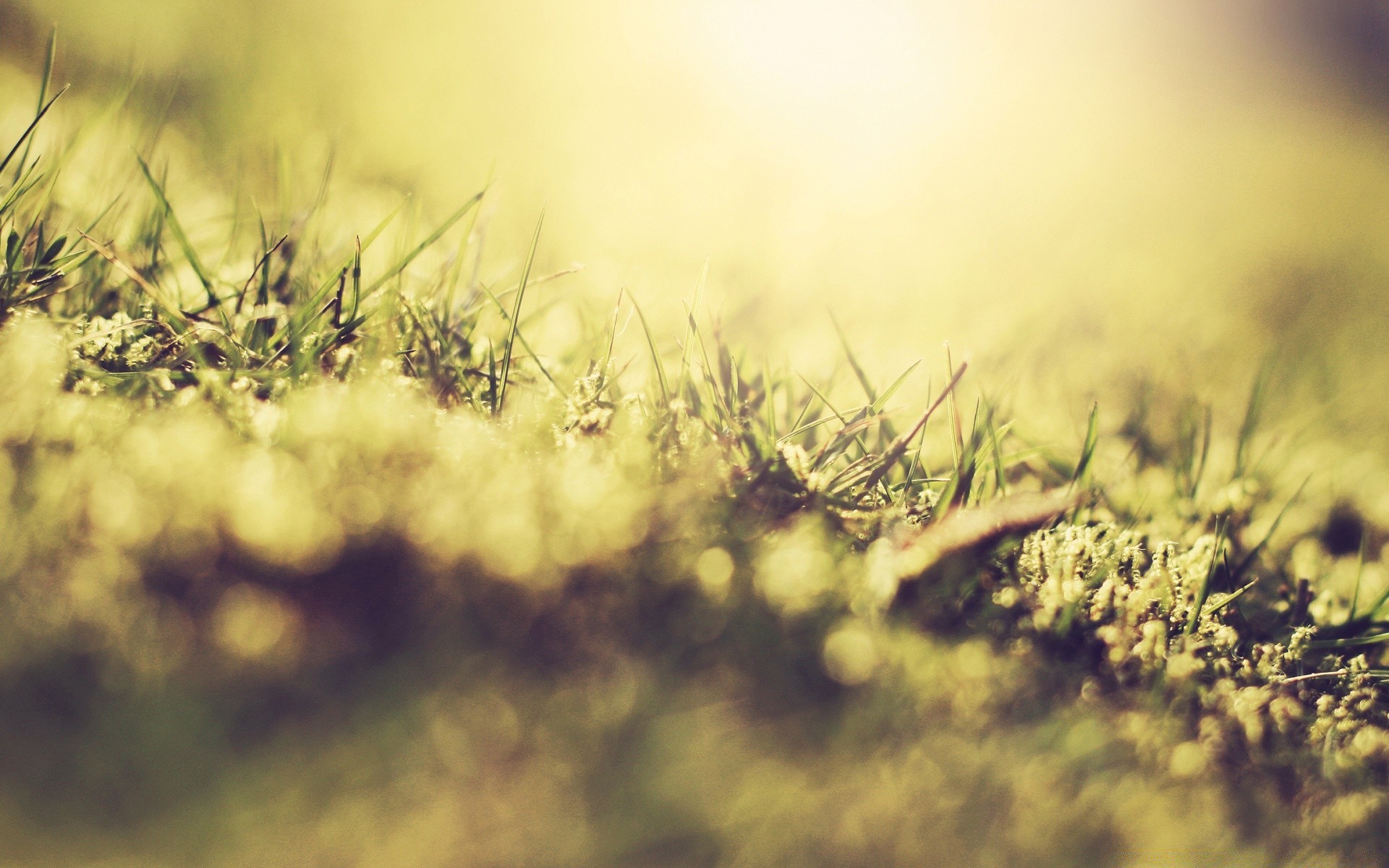 Zielona trawa w porannym słońcu i lśniących kroplach rosy