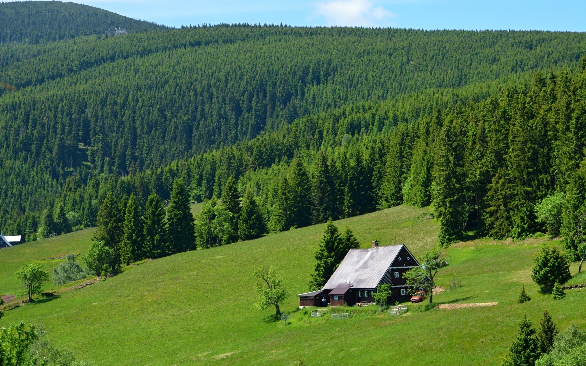 Logo Windows odbite na zielonej łące, oświetlone promieniami słońca przez chmury