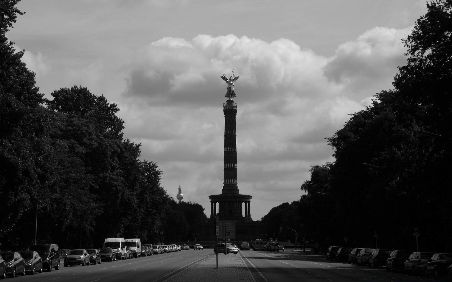 Stella w Paryżu z samochodami i drzewami